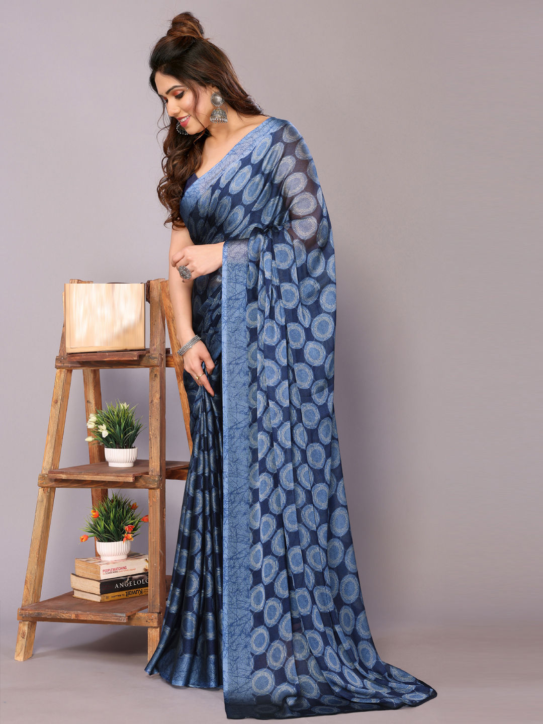 Chiffon Festive Saree in Red and Maroon with Block Print work