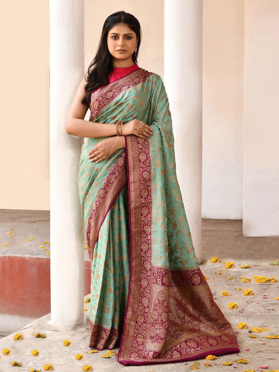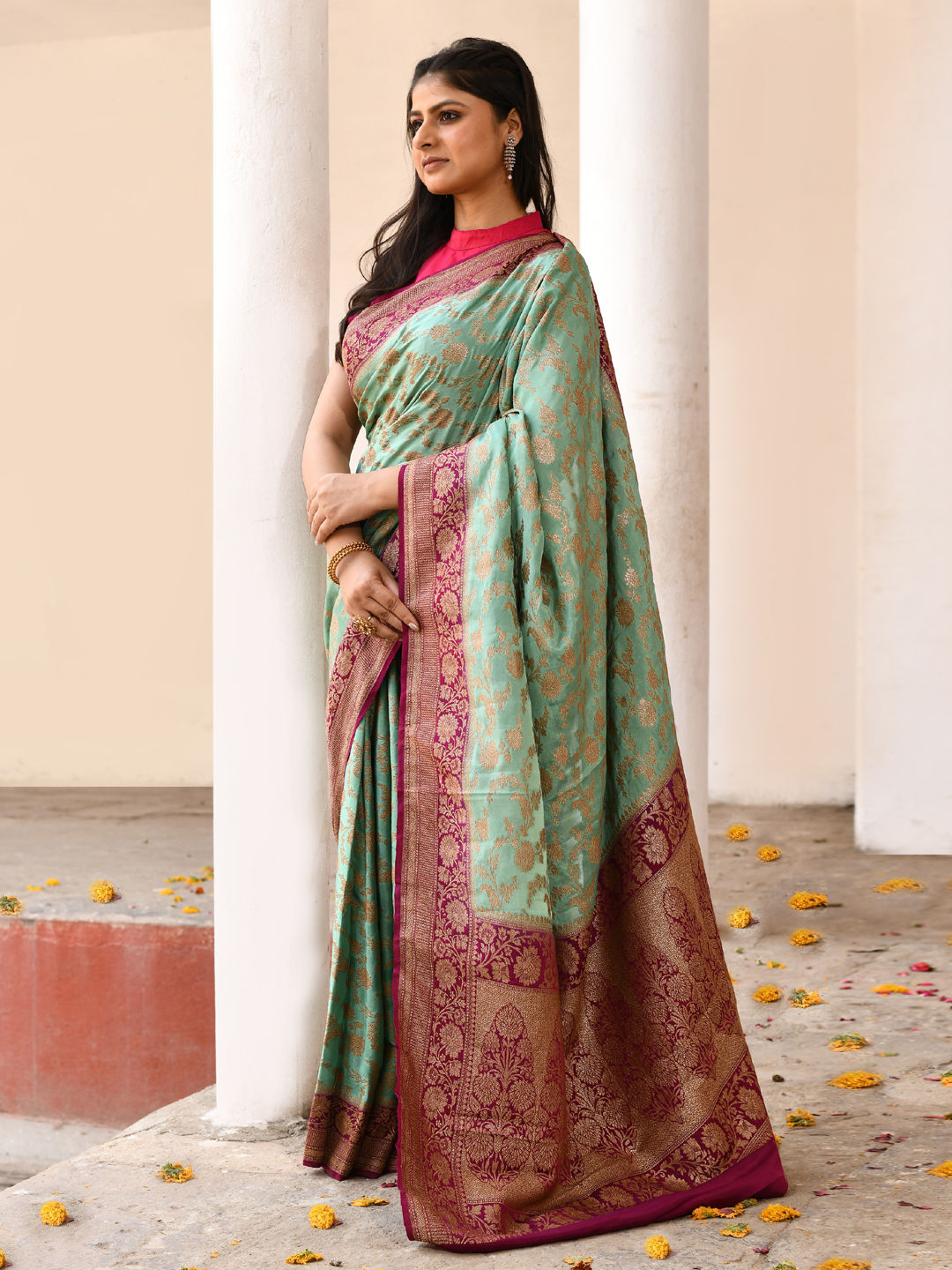 Chiffon Festive Saree in Pink and Majenta with Border work