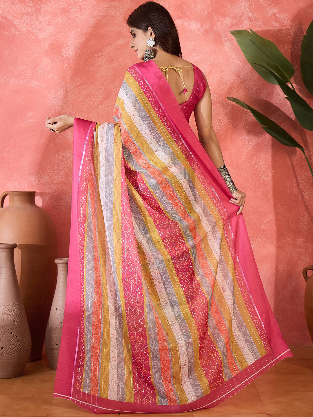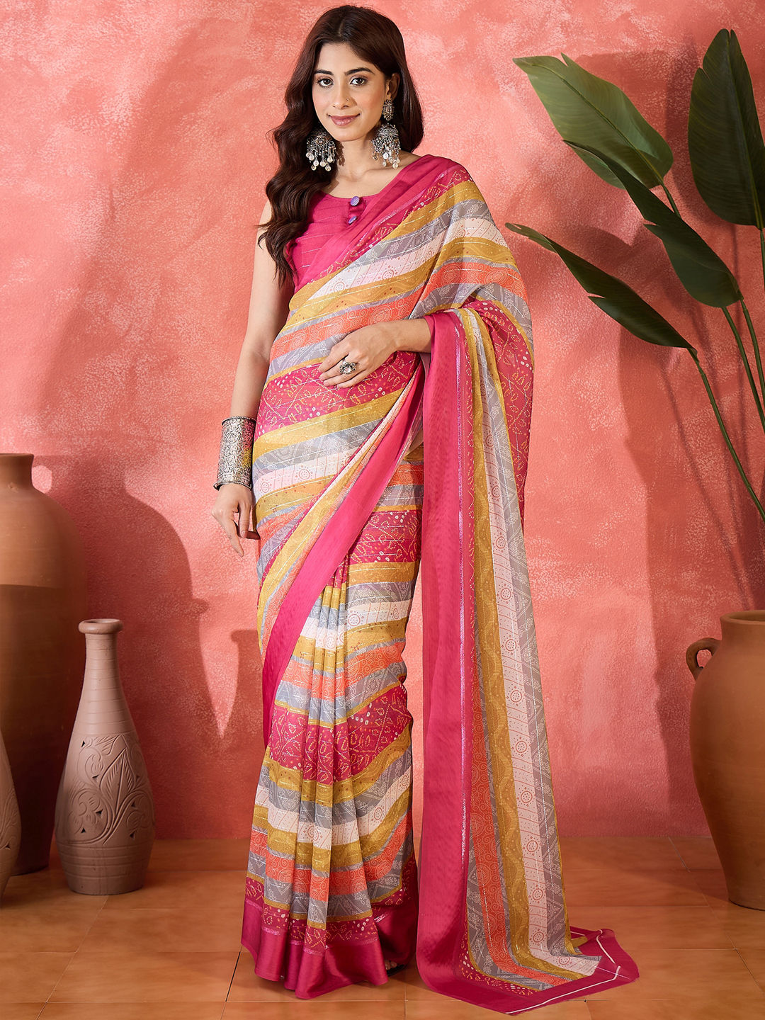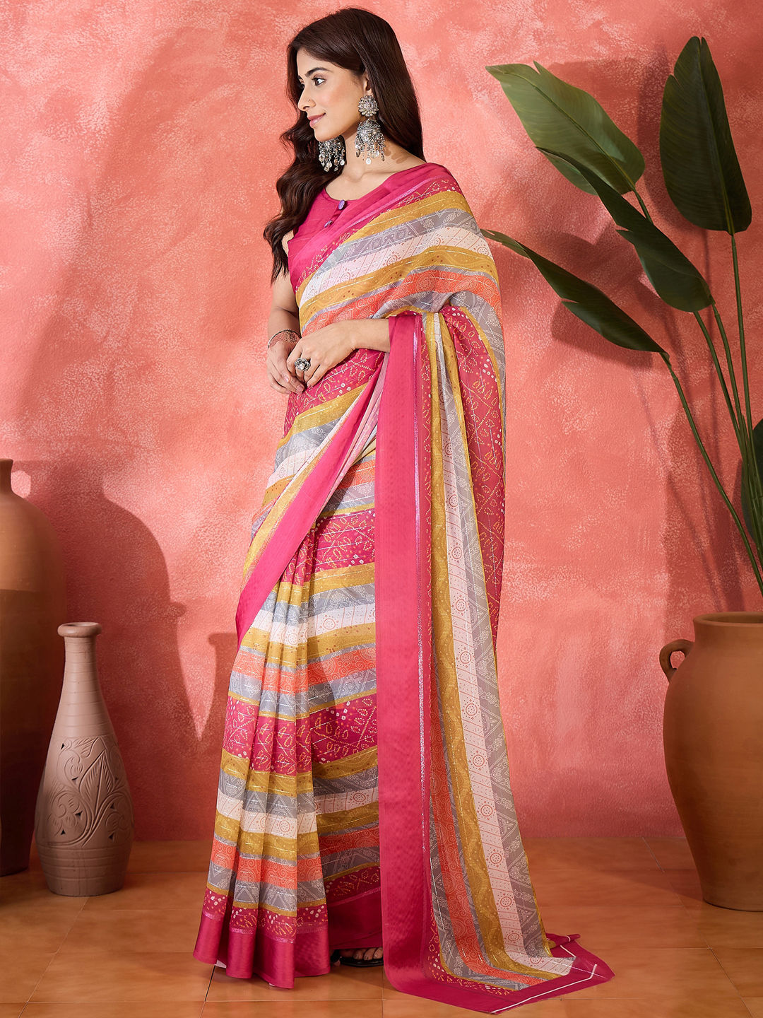 Chiffon Party Wear Saree in Multicolor with Bandhej work