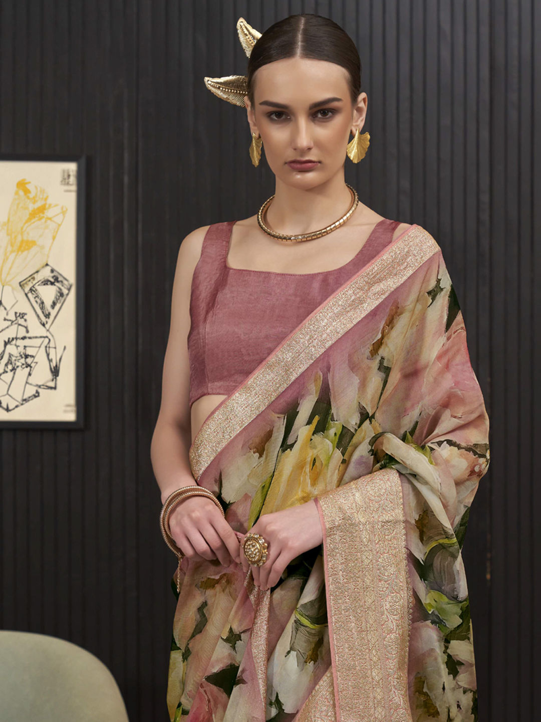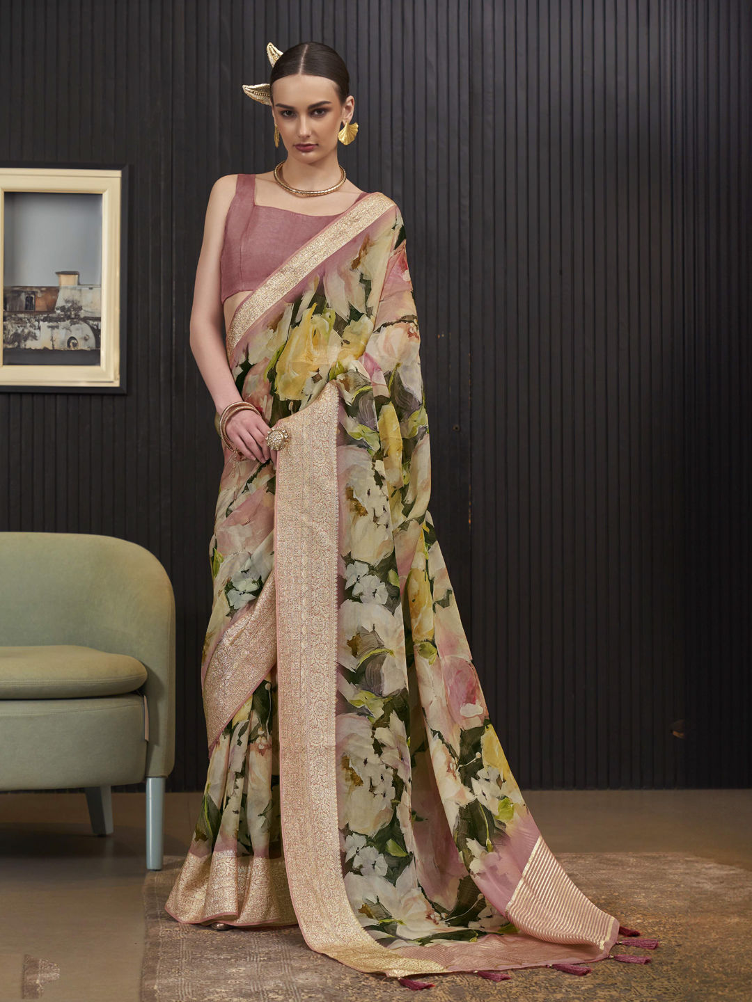 Multicolor color Saree in Chiffon fabric with Floral, Weaving work