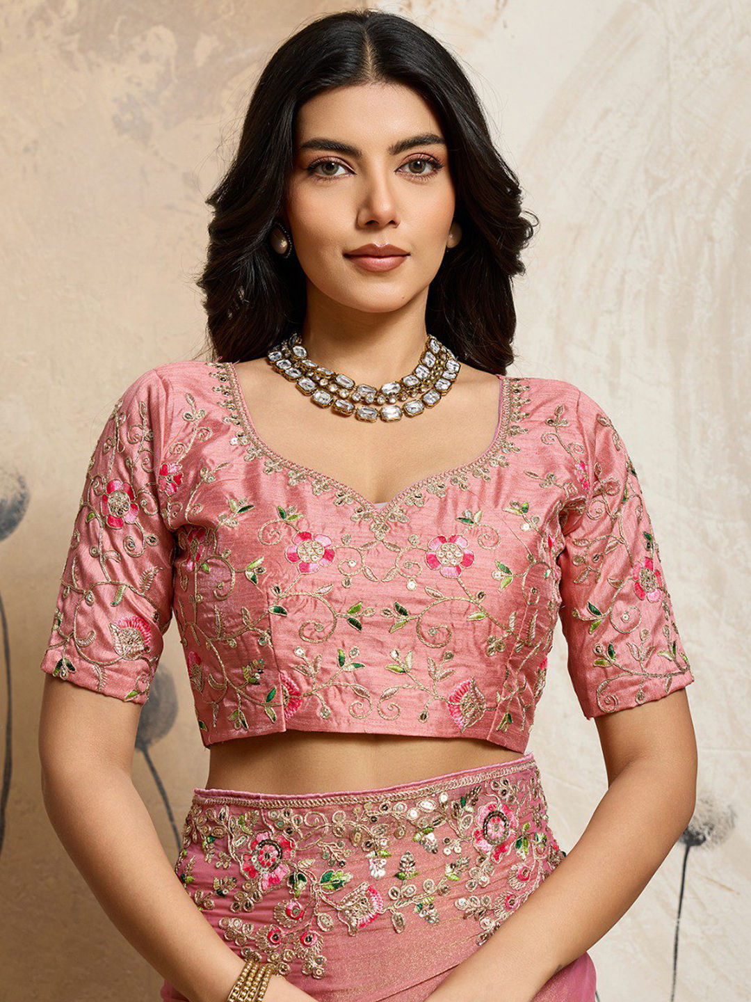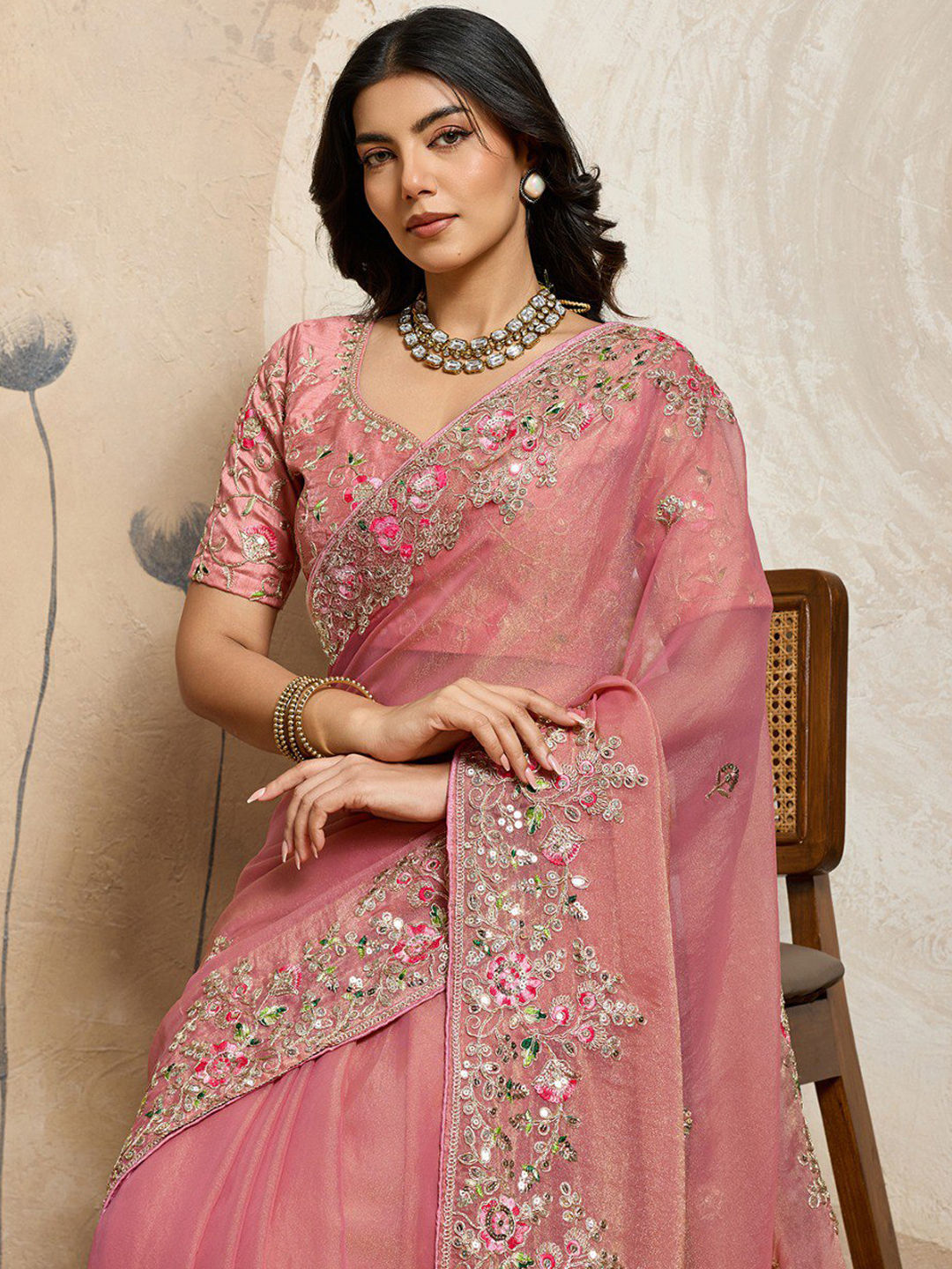 Pink and Majenta color Saree in Chiffon fabric with Embroidered, Thread work