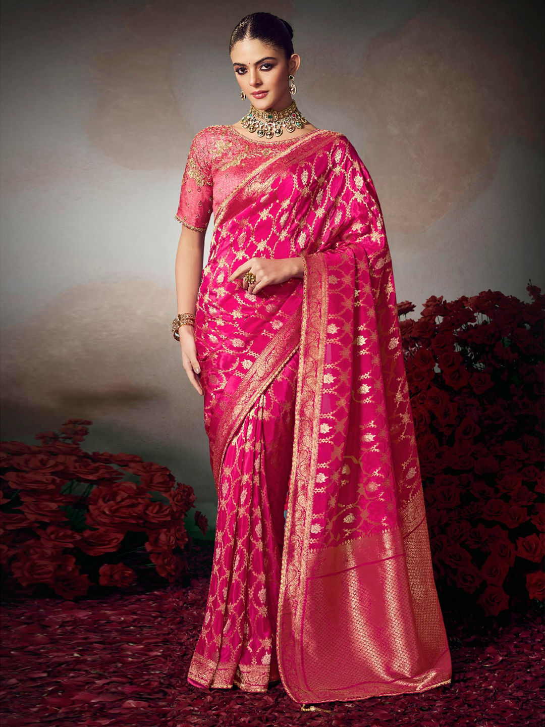 in Pink and Majenta with Embroidered work