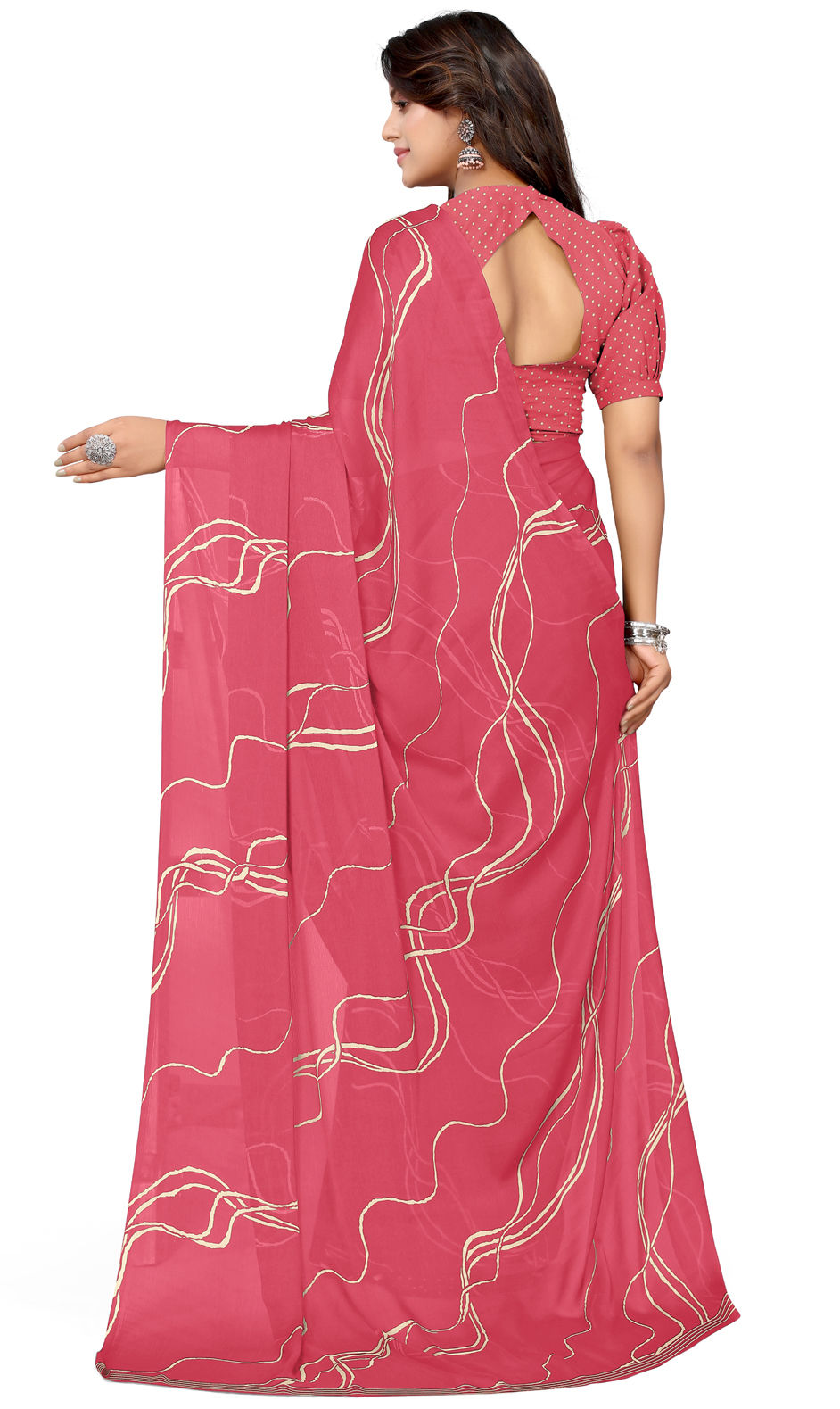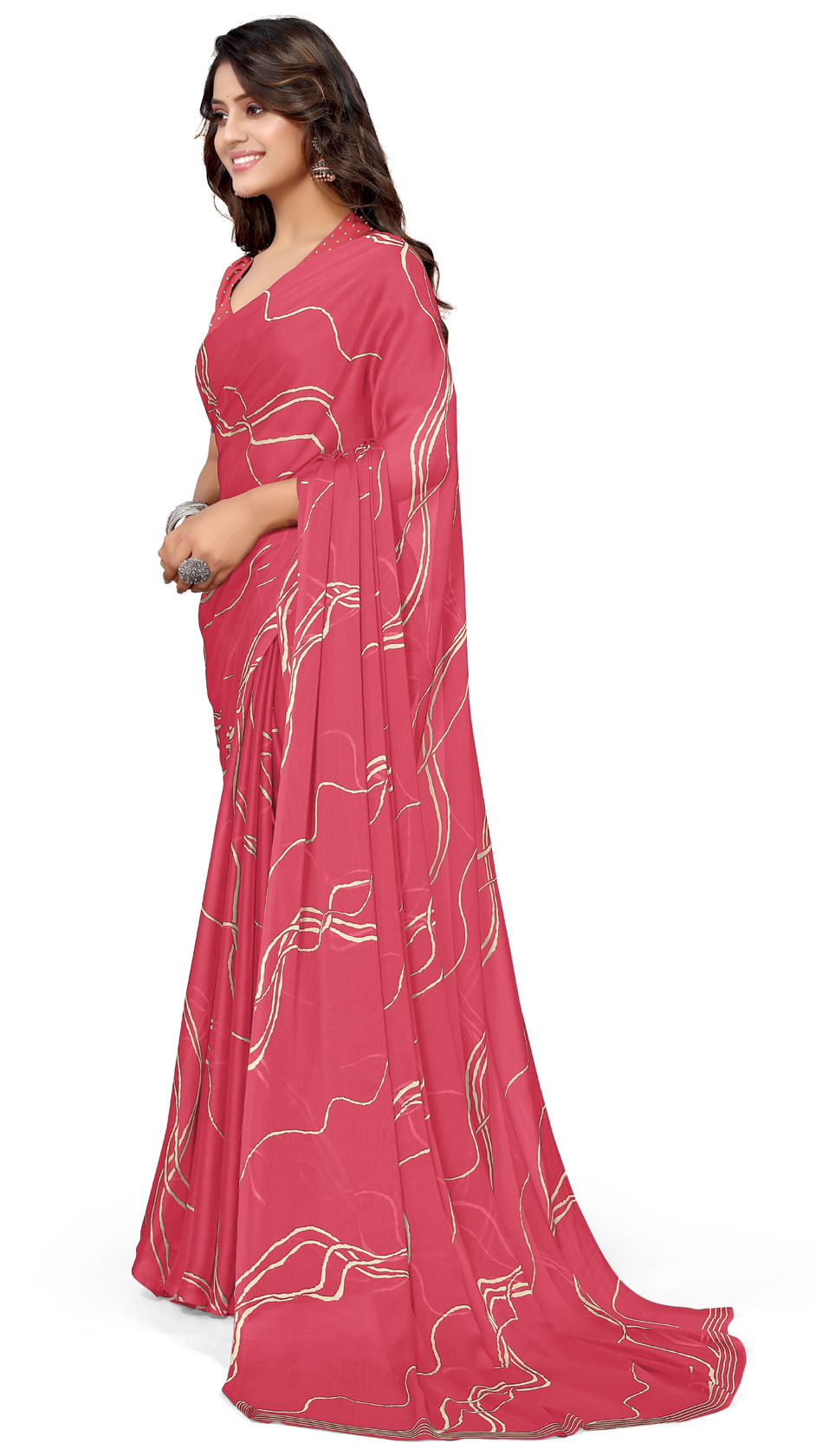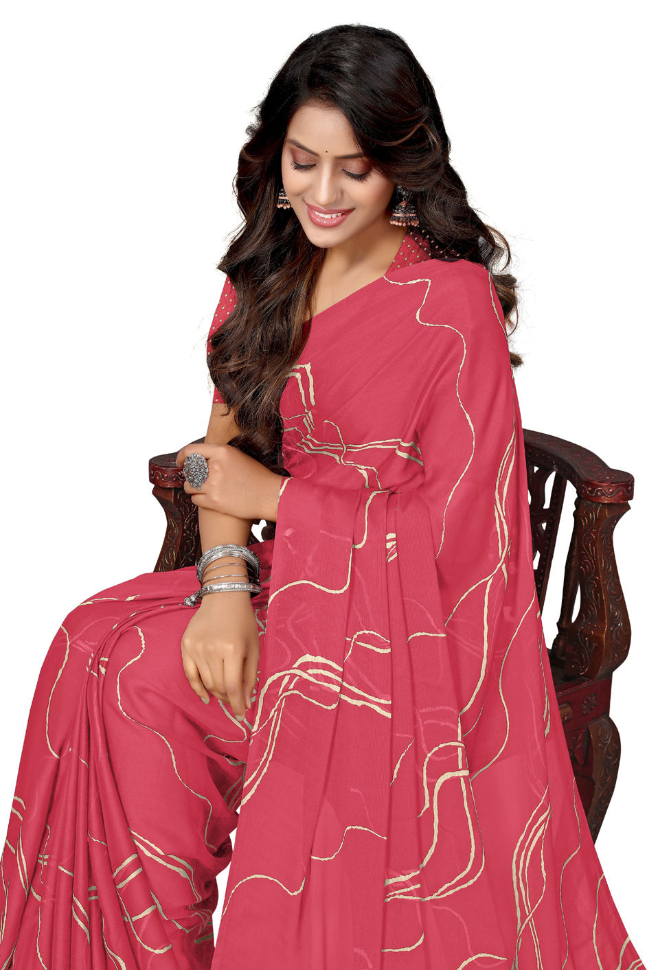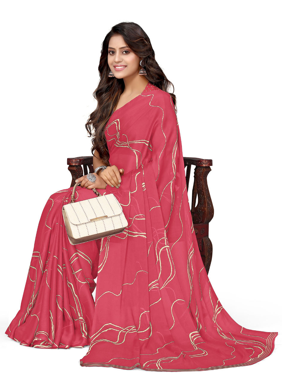 Chiffon Festive Saree in Pink and Majenta with Printed work