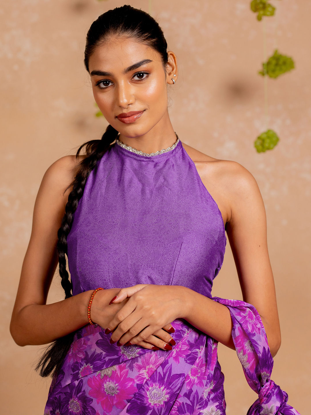 Chiffon Festive Saree in Purple and Violet with Floral work