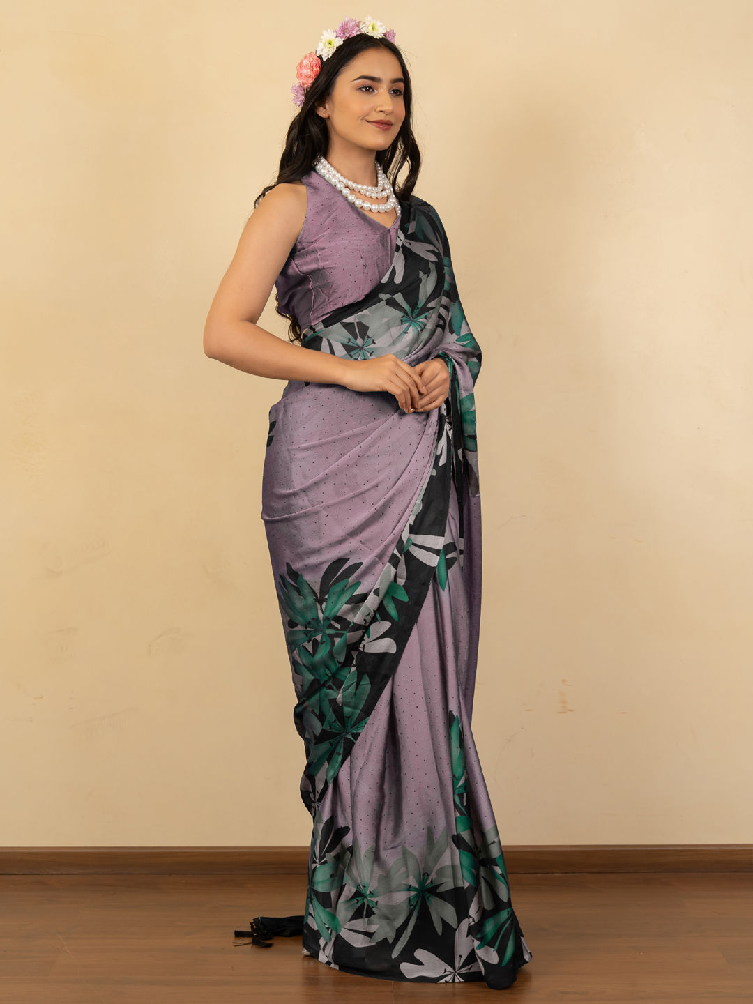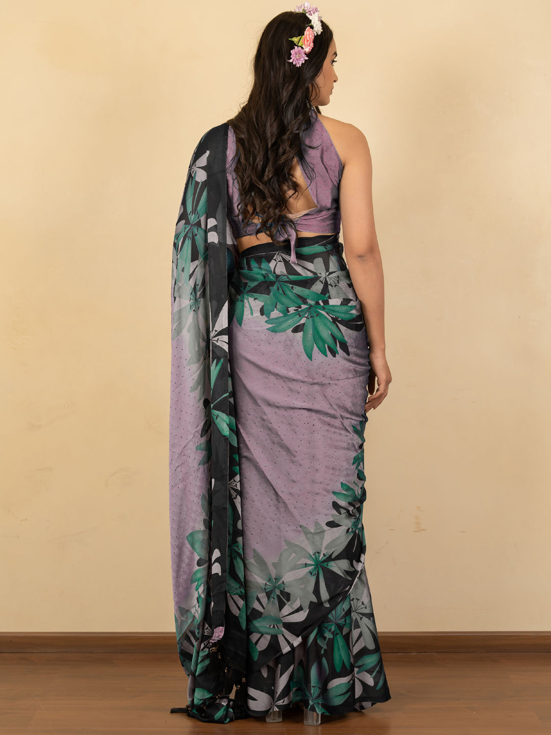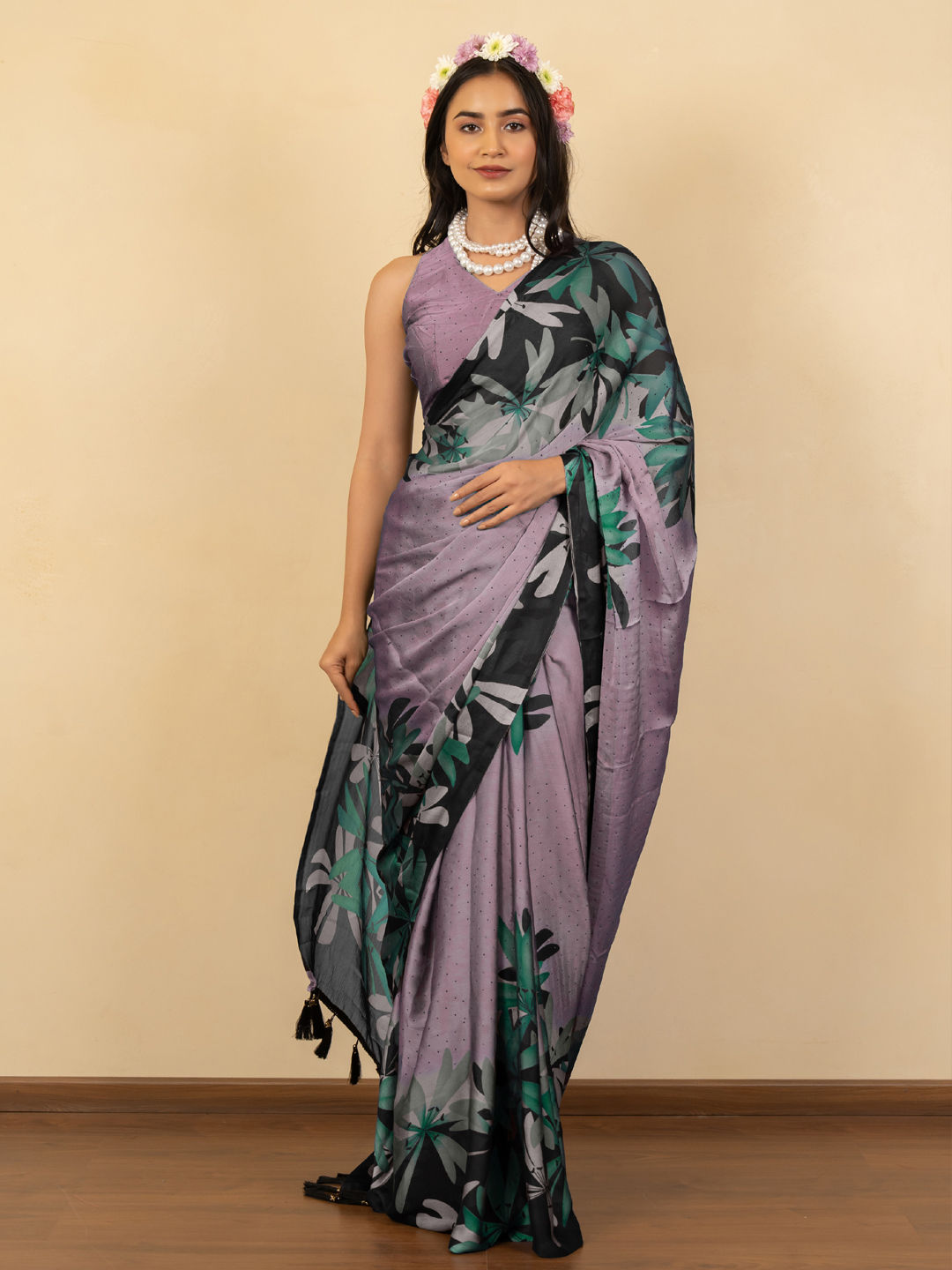 Purple and Violet color Saree in Chiffon fabric with Floral work