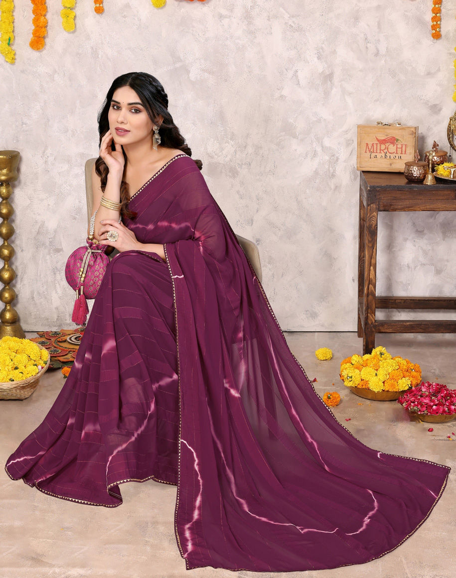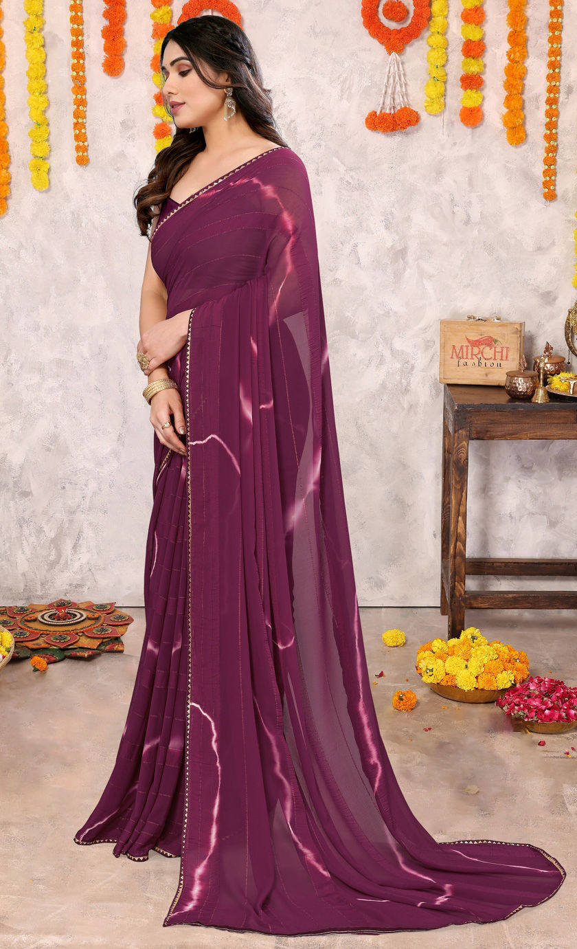 Purple and Violet color Saree in Chiffon fabric with Printed, Tye n Dye work