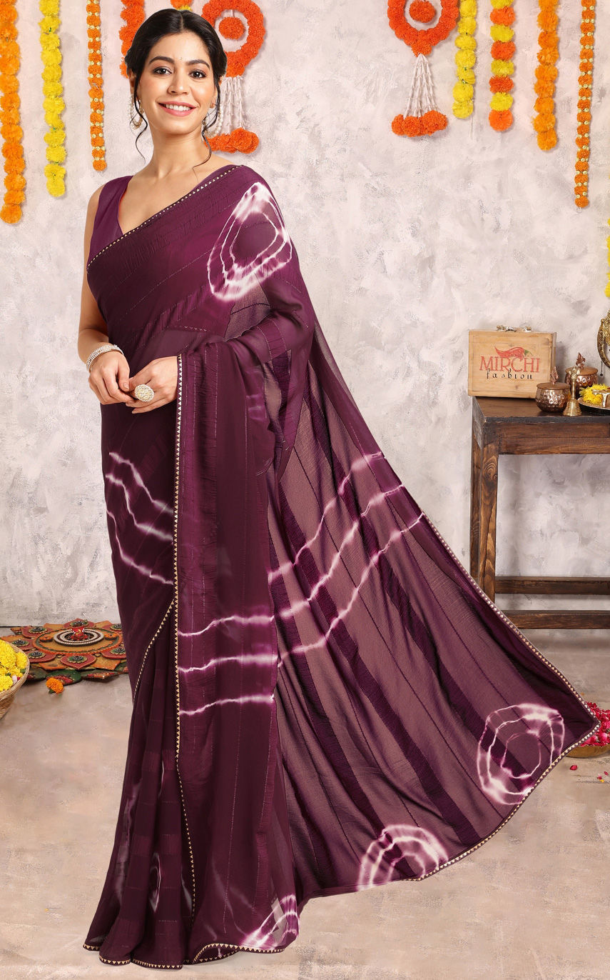 Chiffon Reception Saree in Purple and Violet with Tye n Dye work