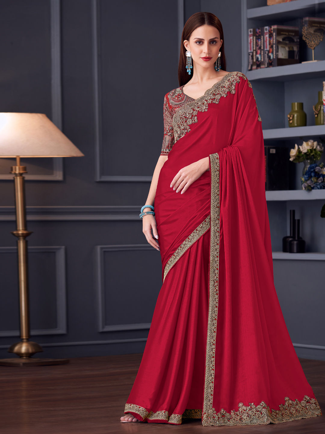 in Red and Maroon with Embroidered work