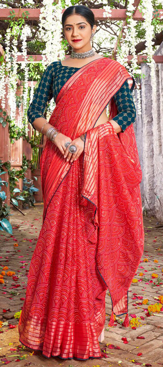 Red and Maroon color Saree in Chiffon fabric with Printed work