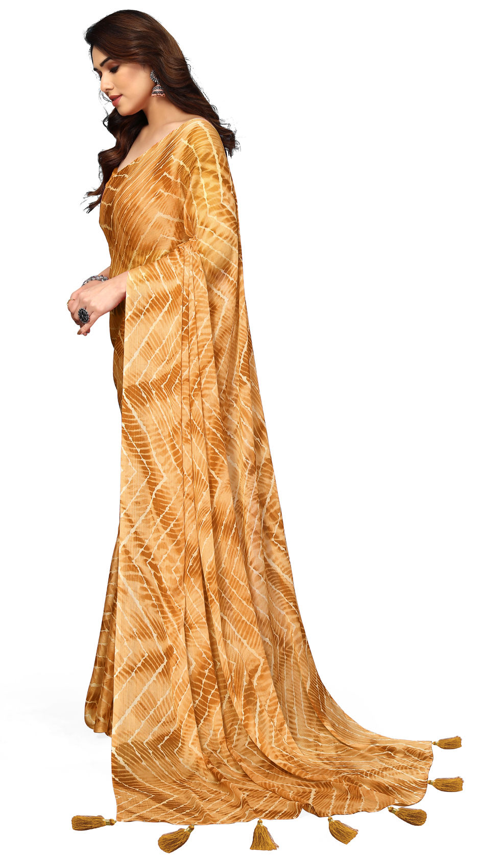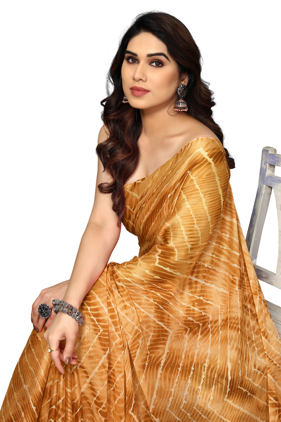 Chiffon Reception Saree in Beige and Brown with Printed work