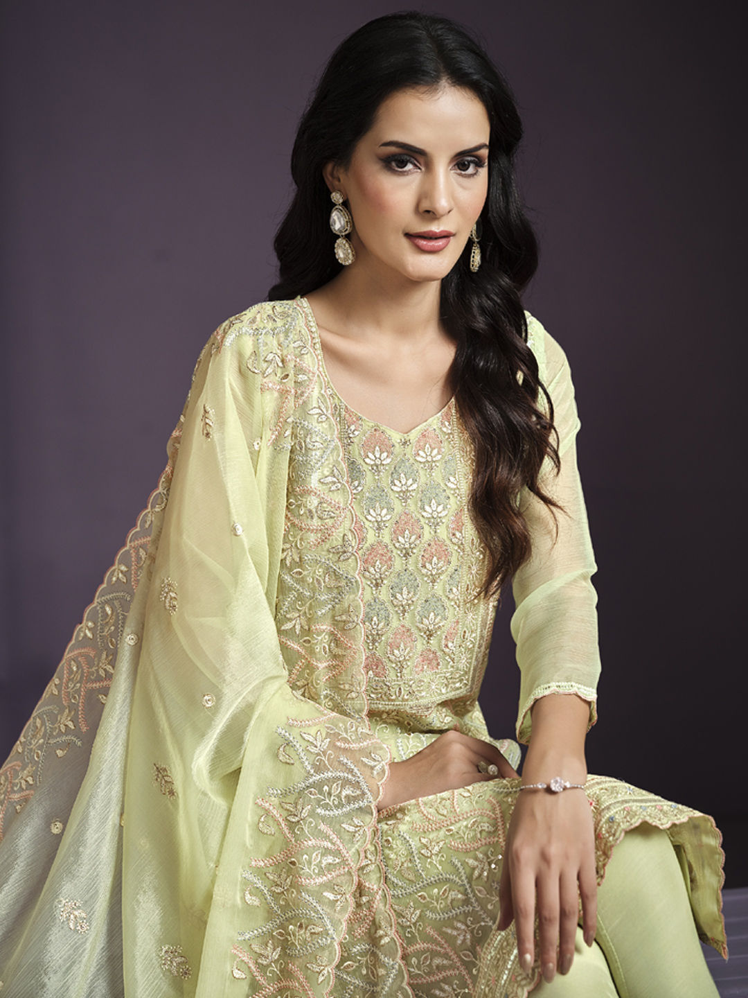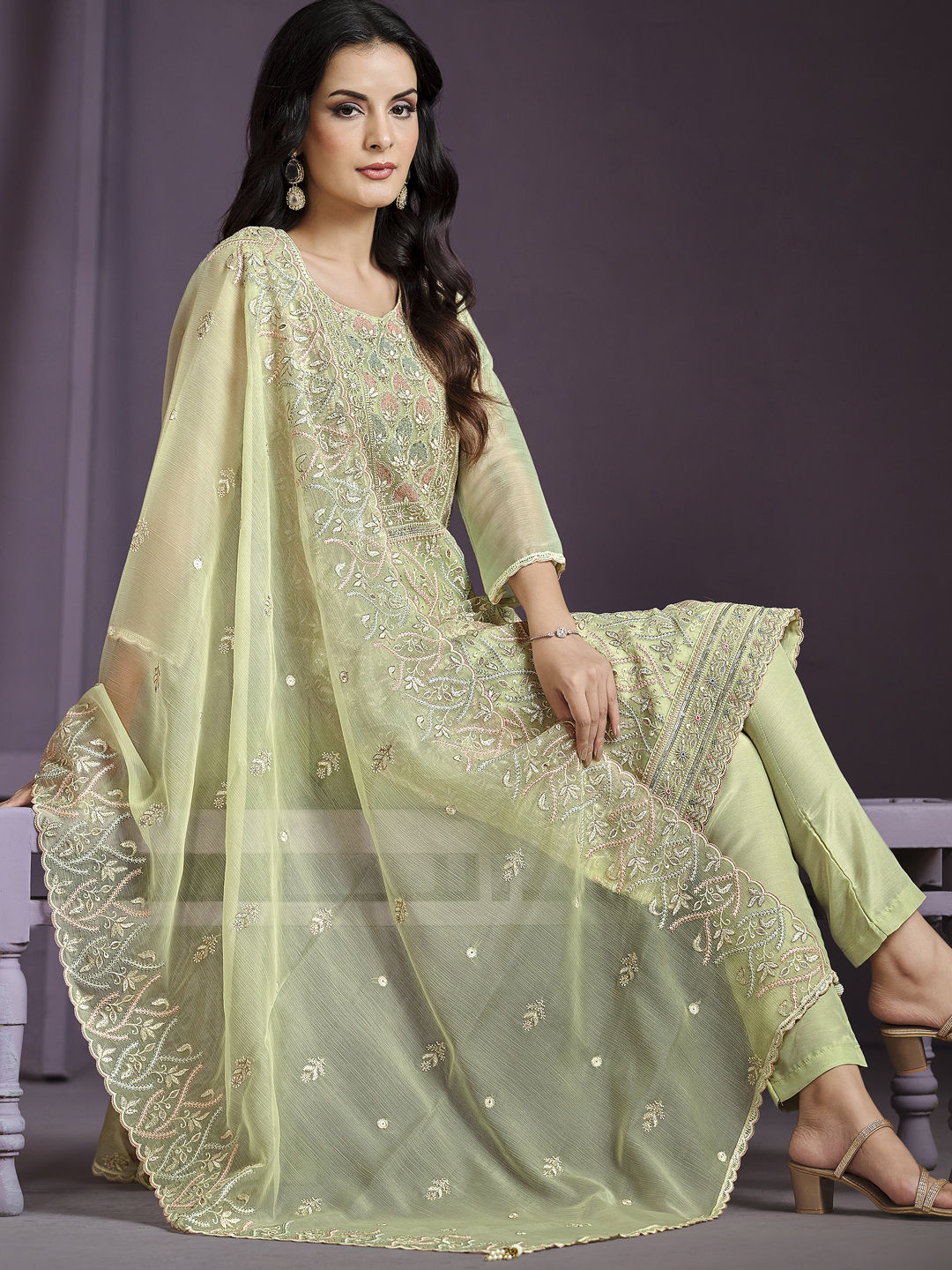 Green color Salwar Kameez in Chiffon fabric with Embroidered, Resham, Thread work