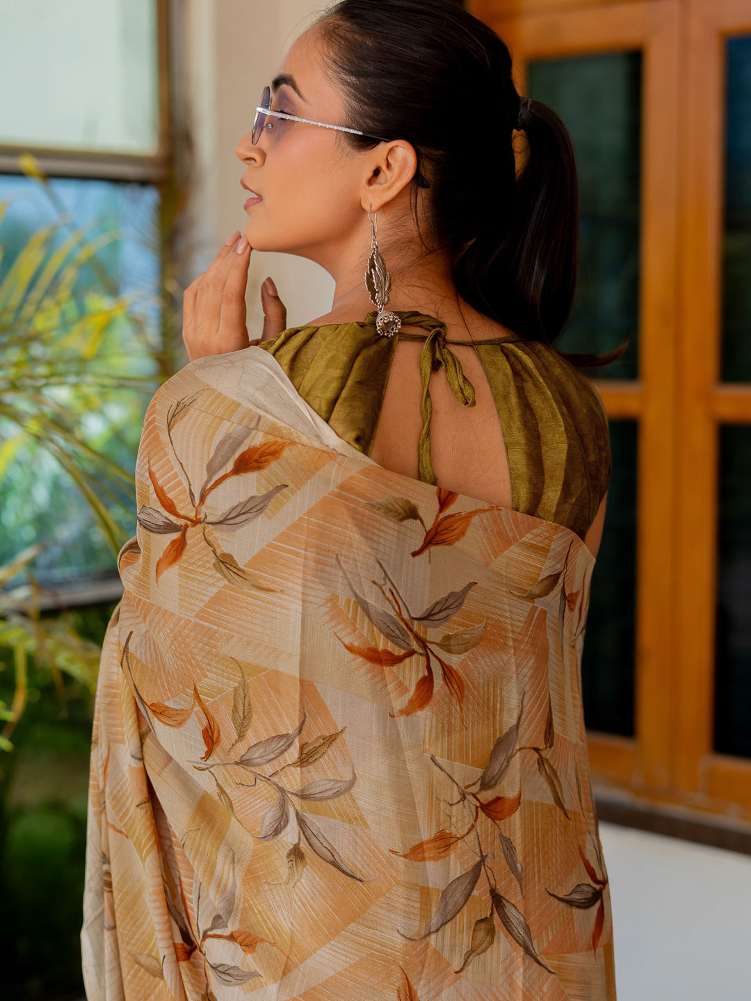in Beige and Brown with Floral work
