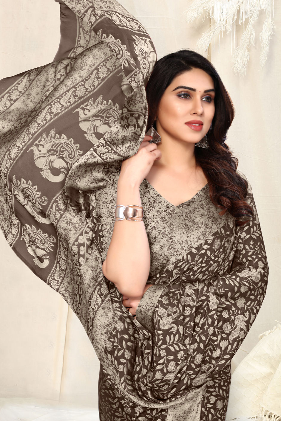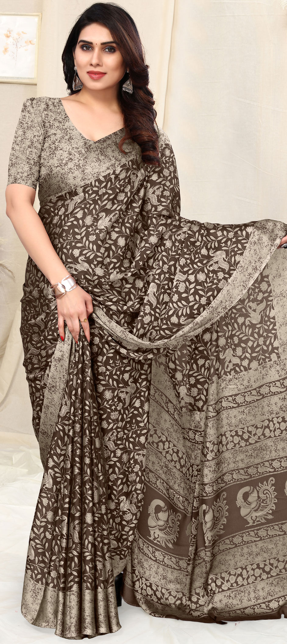 Beige and Brown color Saree in Chiffon fabric with Printed work