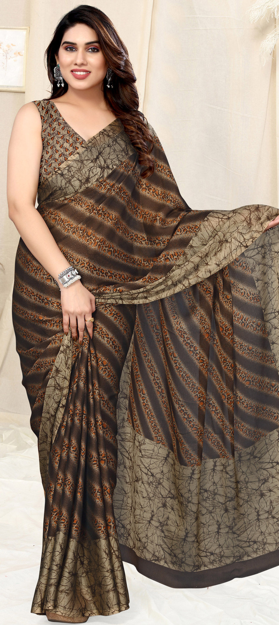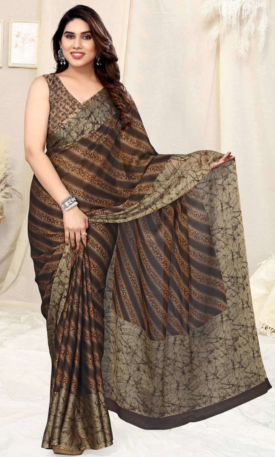 Beige and Brown color Saree in Chiffon fabric with Printed work