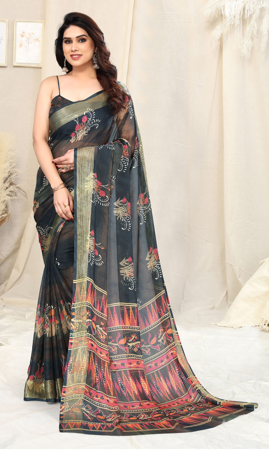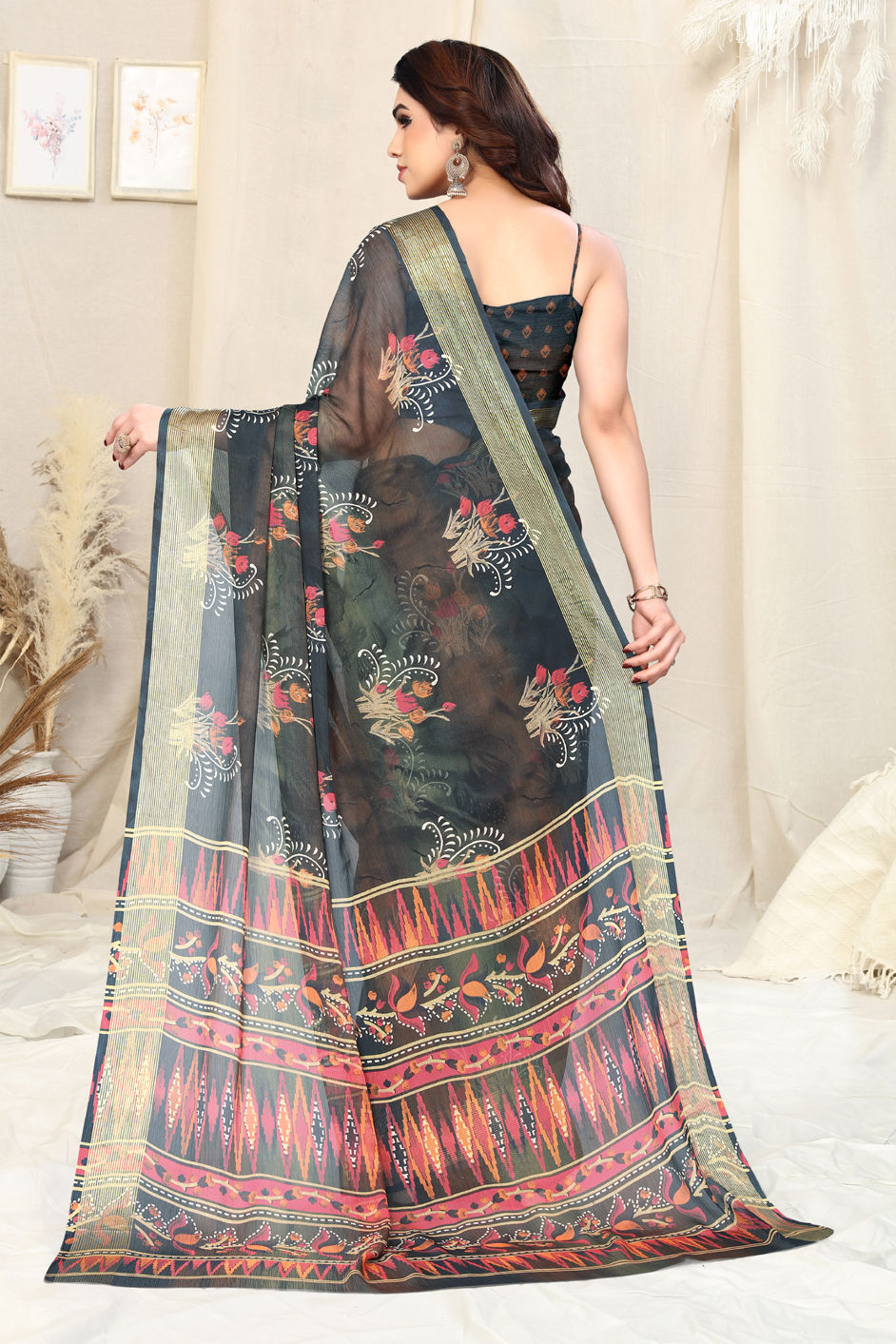 Black and Grey color Saree in Chiffon fabric with Printed work