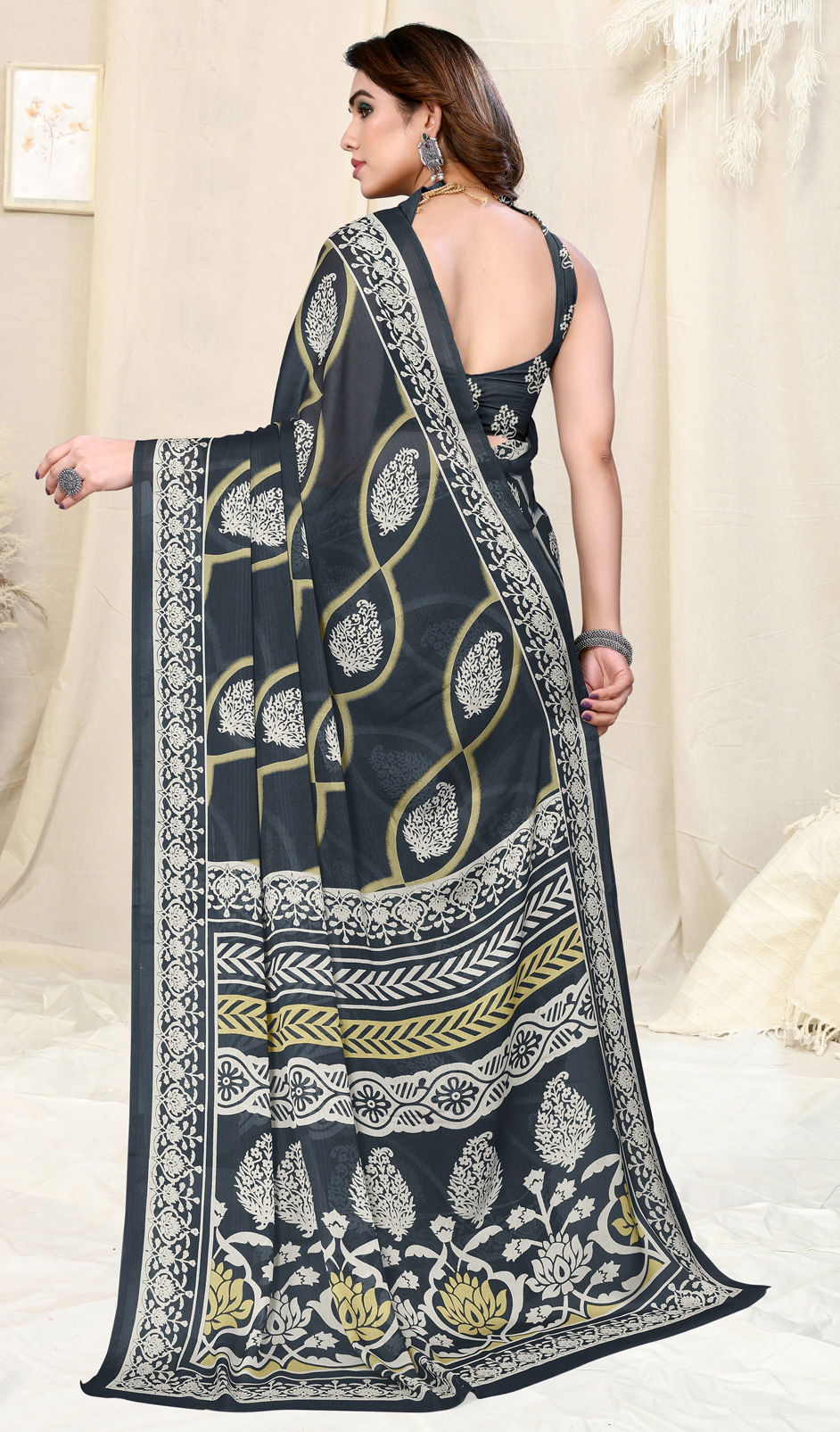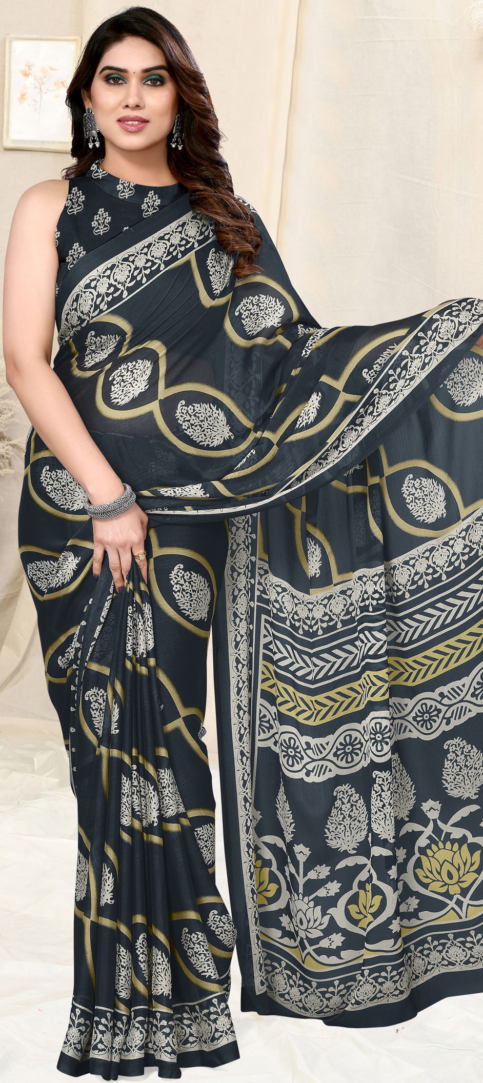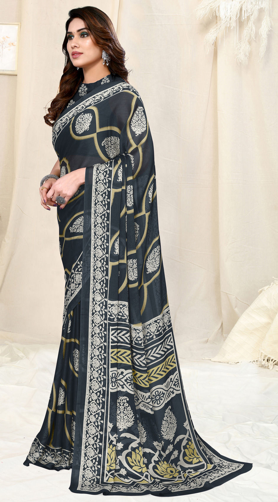 Black and Grey color Saree in Chiffon fabric with Printed work