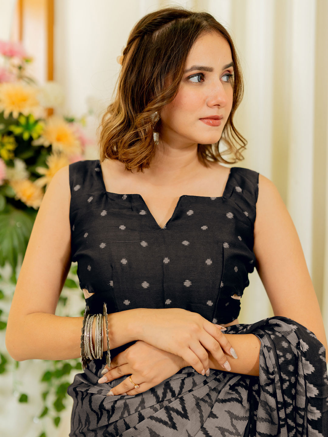 Chiffon Party Wear Saree in Black and Grey with Printed work