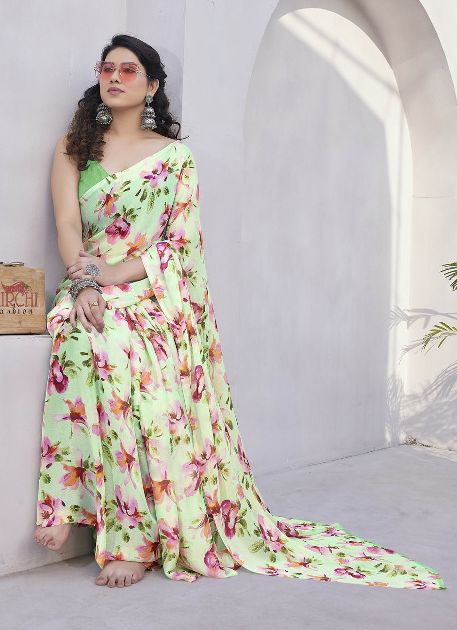 Green color Saree in Chiffon fabric with Floral, Printed work