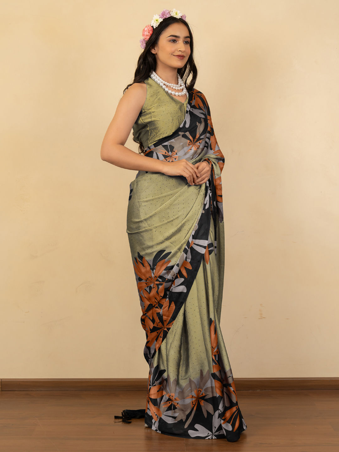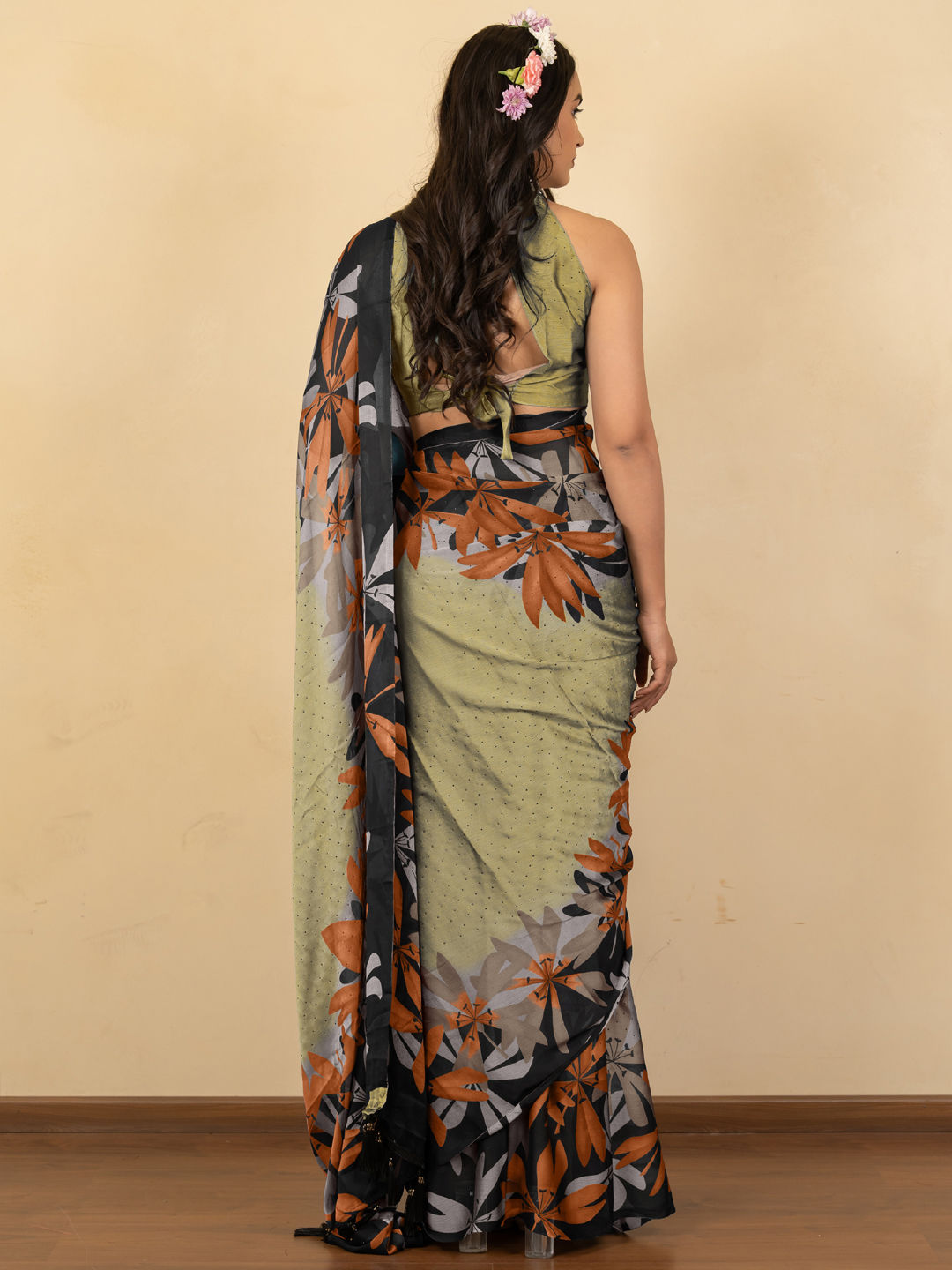 Green color Saree in Chiffon fabric with Floral, Printed work