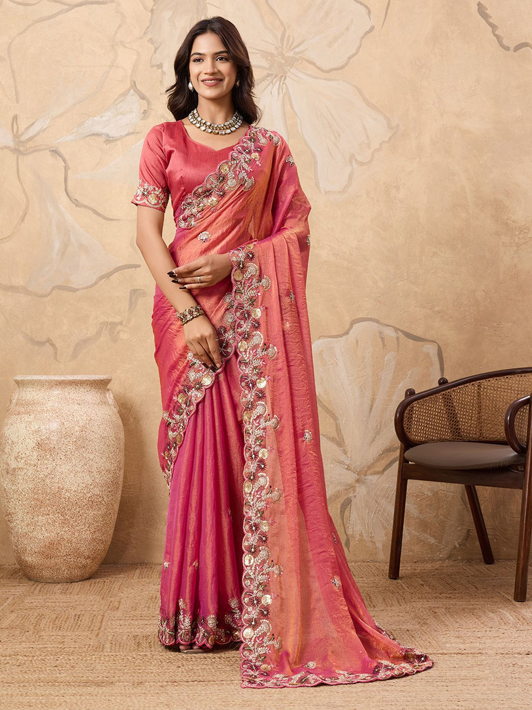 Chiffon Party Wear Saree in Pink and Majenta with Sequence work