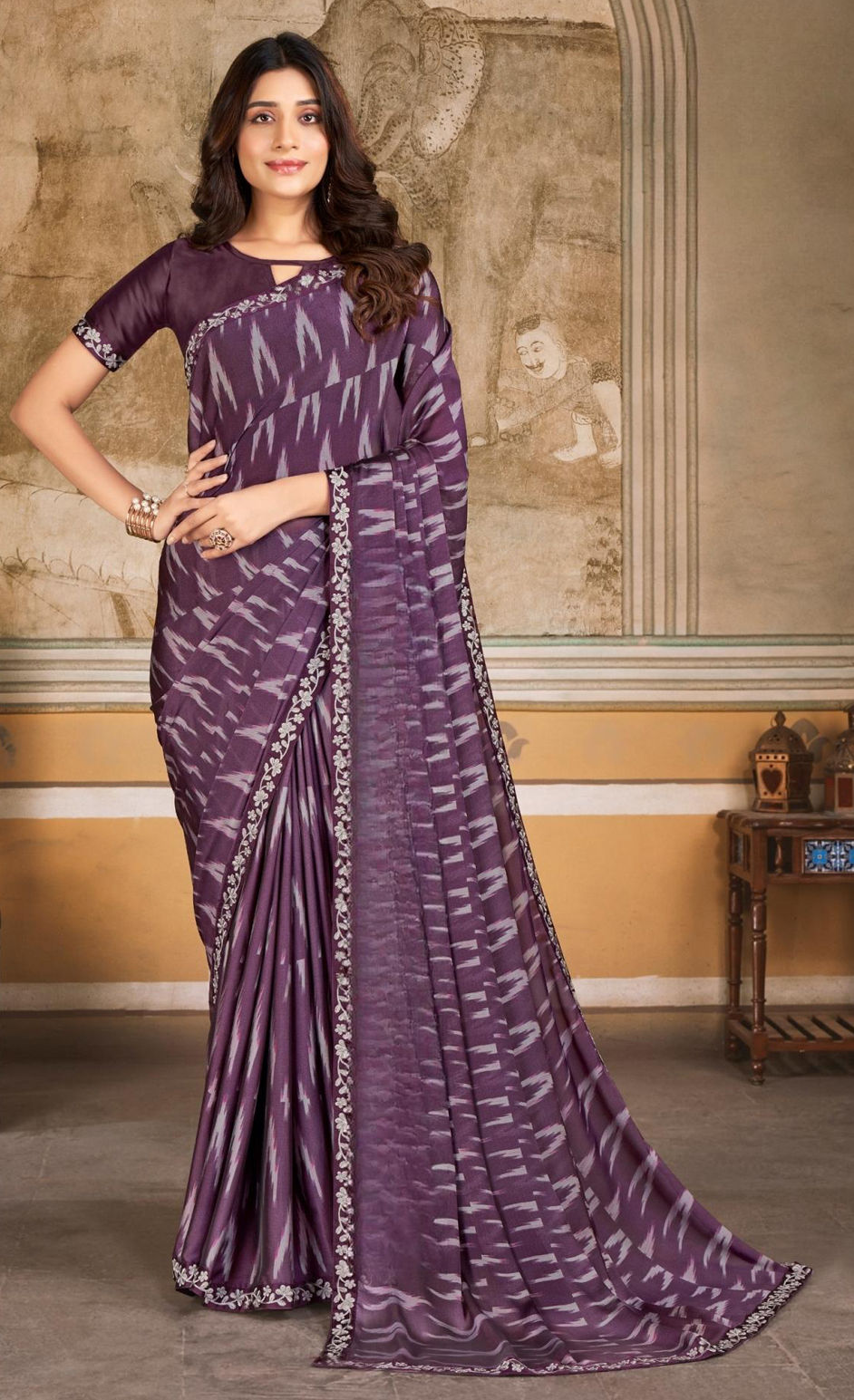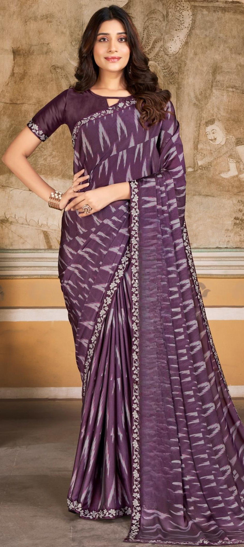 Purple and Violet color Saree in Chiffon fabric with Digital Print work