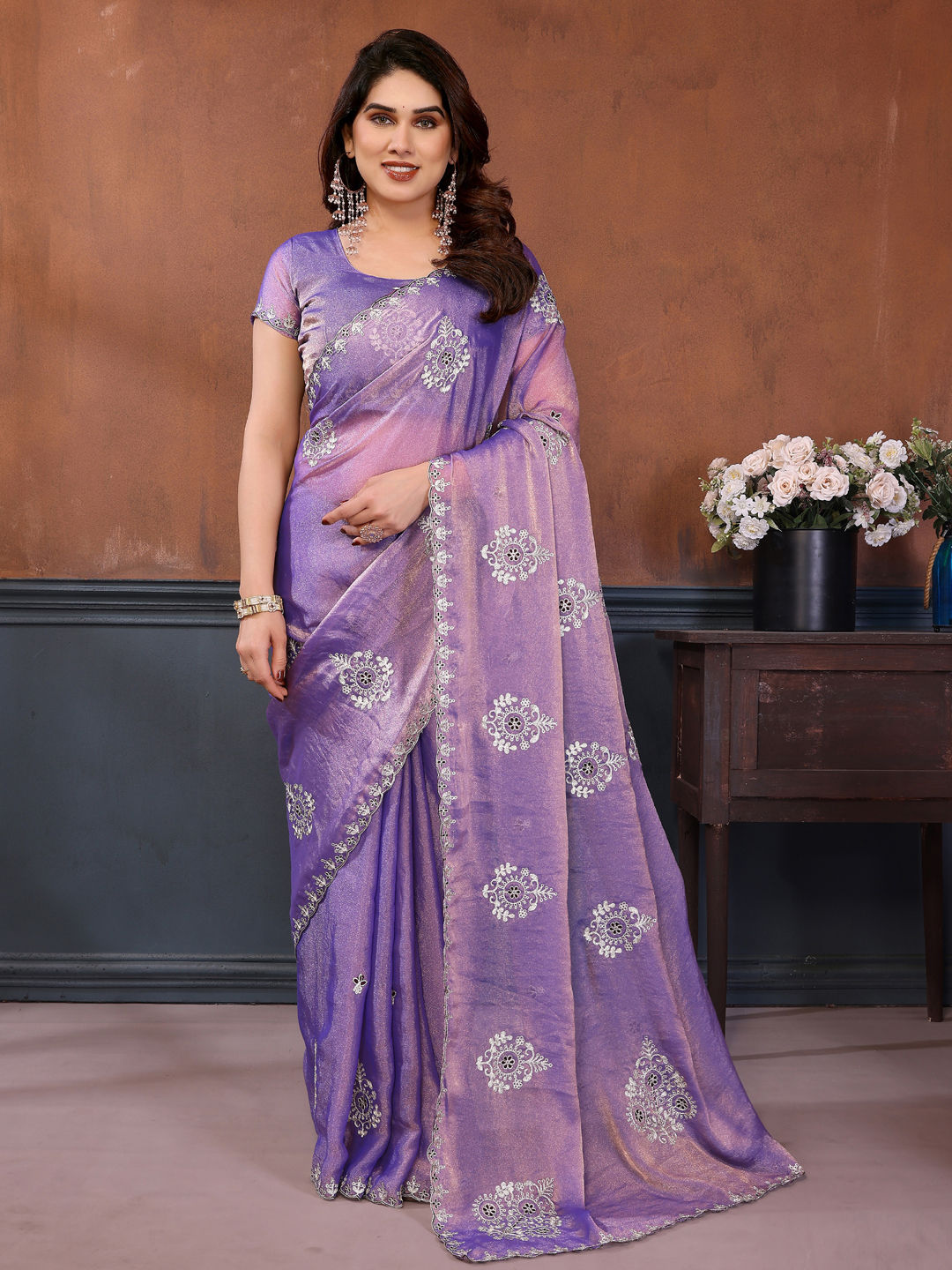 Purple and Violet color Saree in Chiffon fabric with Embroidered work