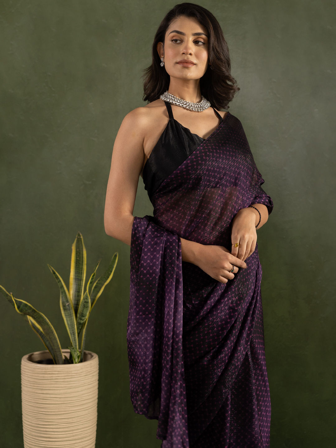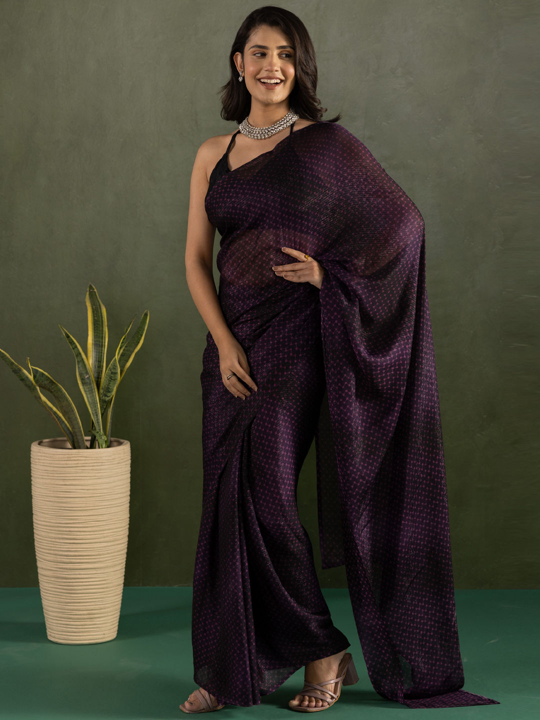 Purple and Violet color Saree in Chiffon fabric with Printed work