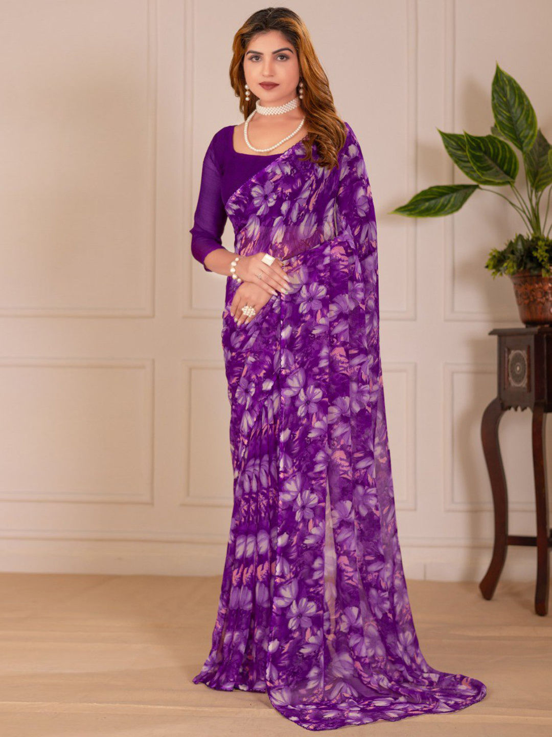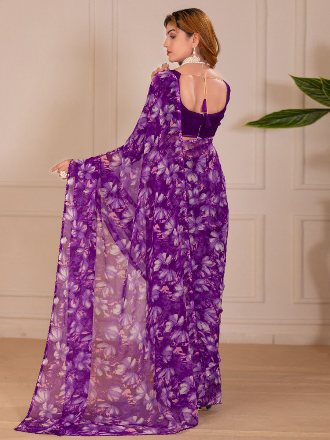 Purple and Violet color Saree in Chiffon fabric with Floral, Printed work