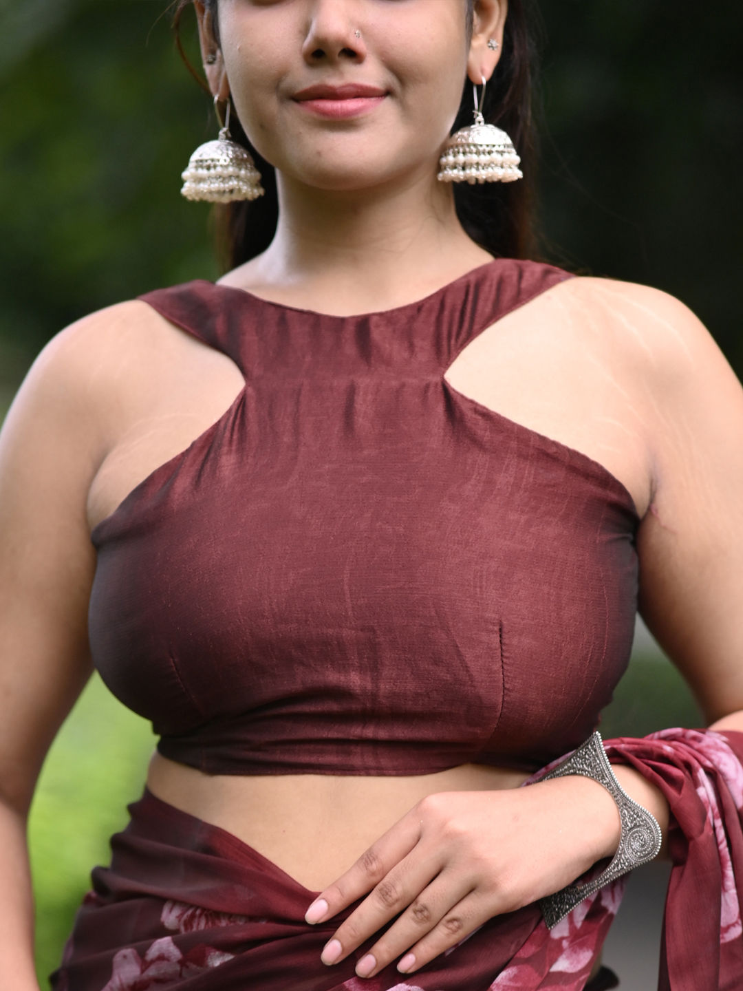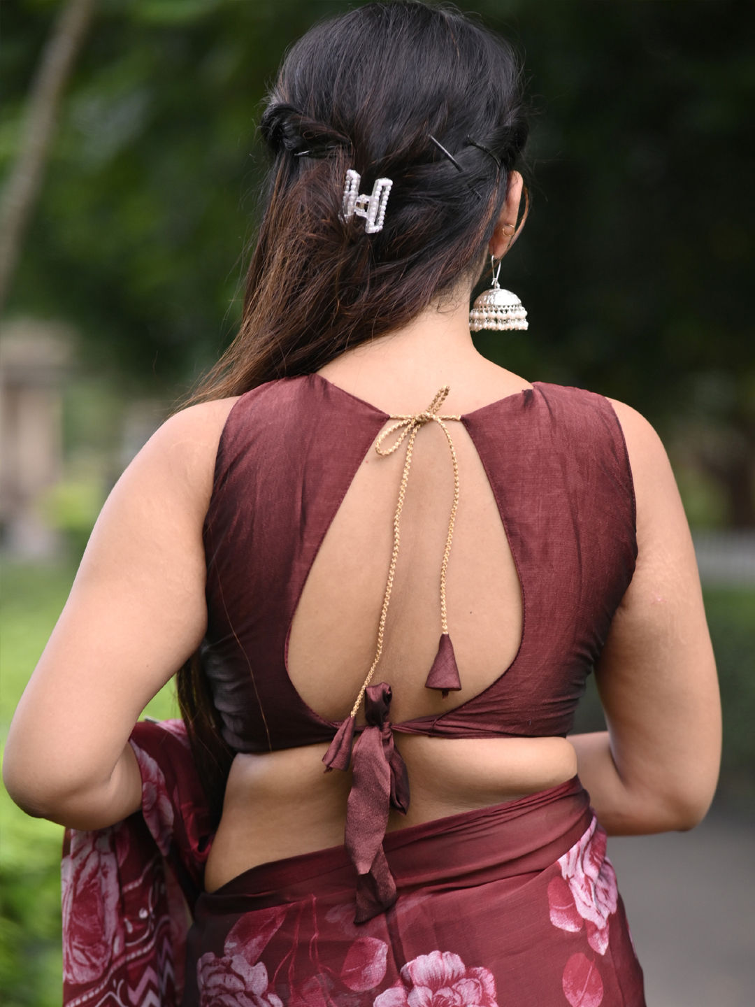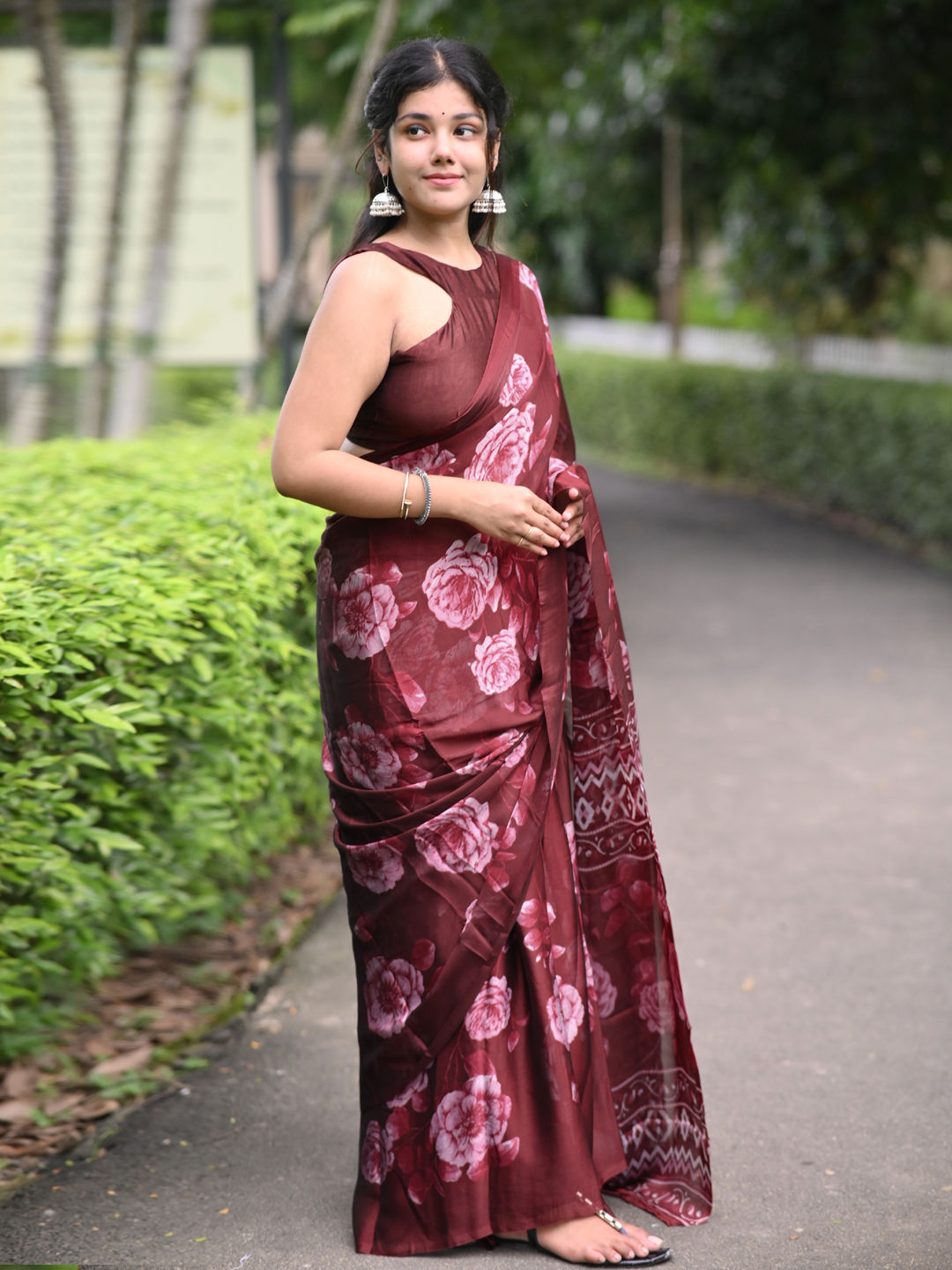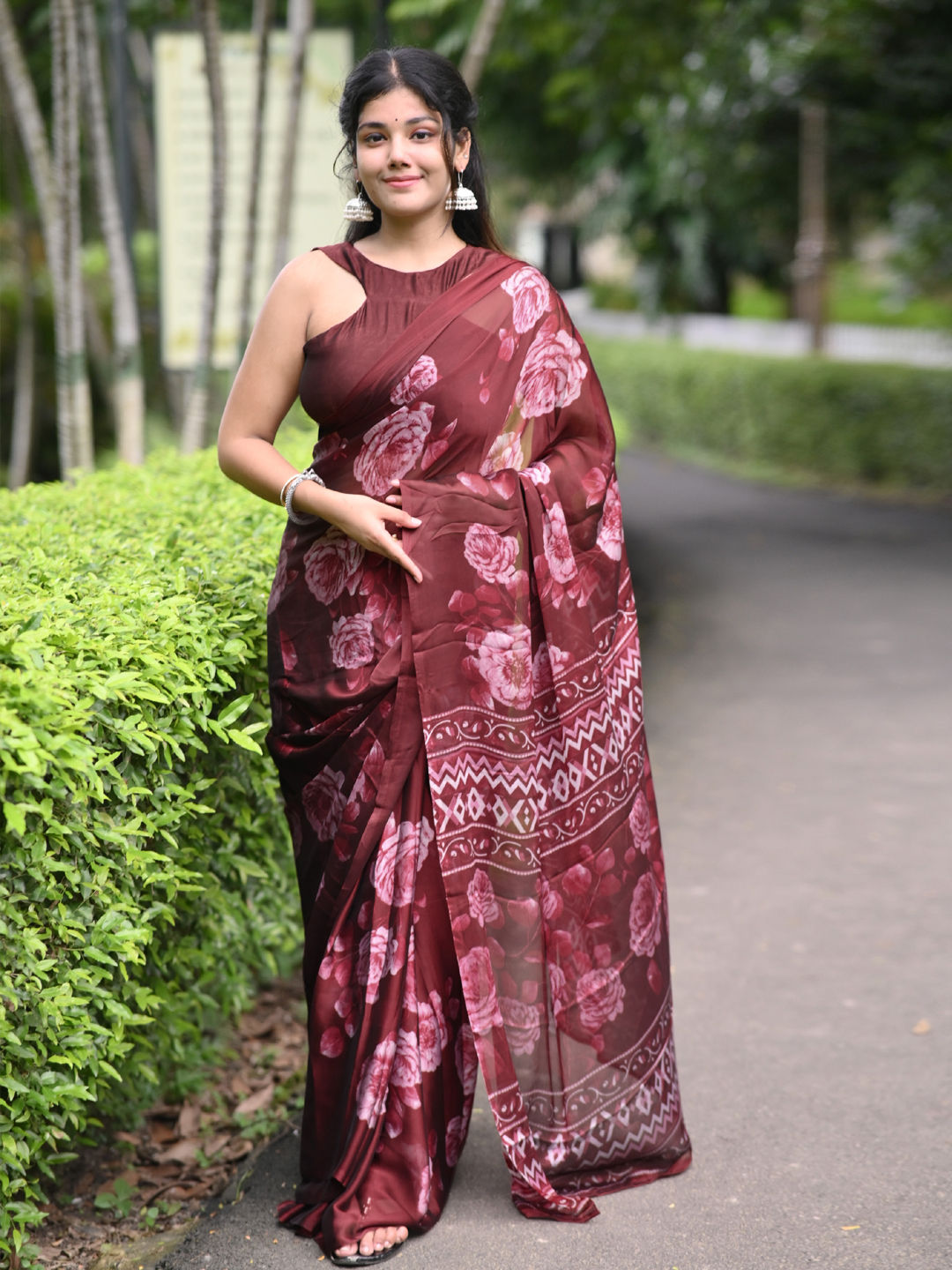 Red and Maroon color Saree in Chiffon fabric with Floral, Printed work