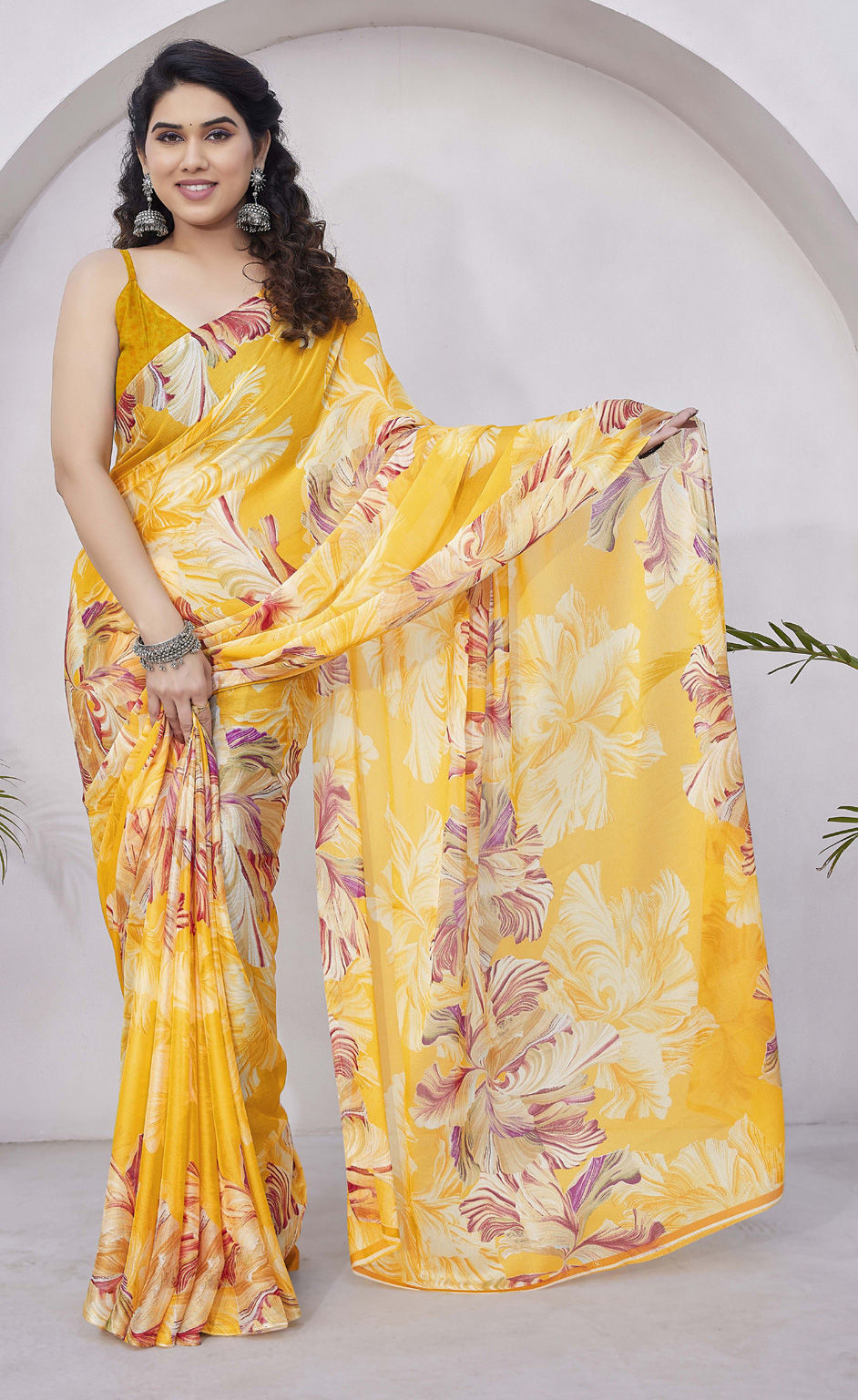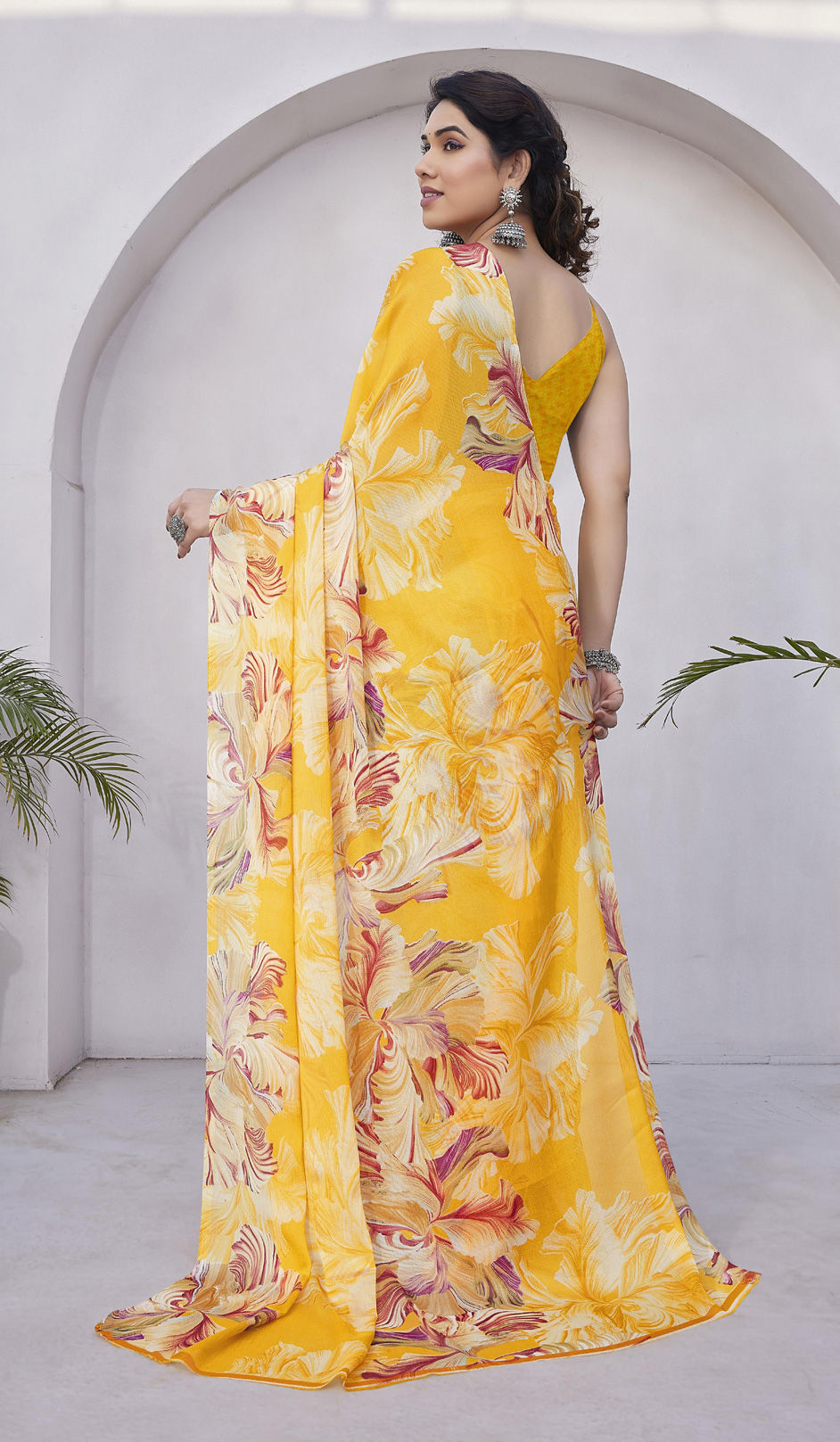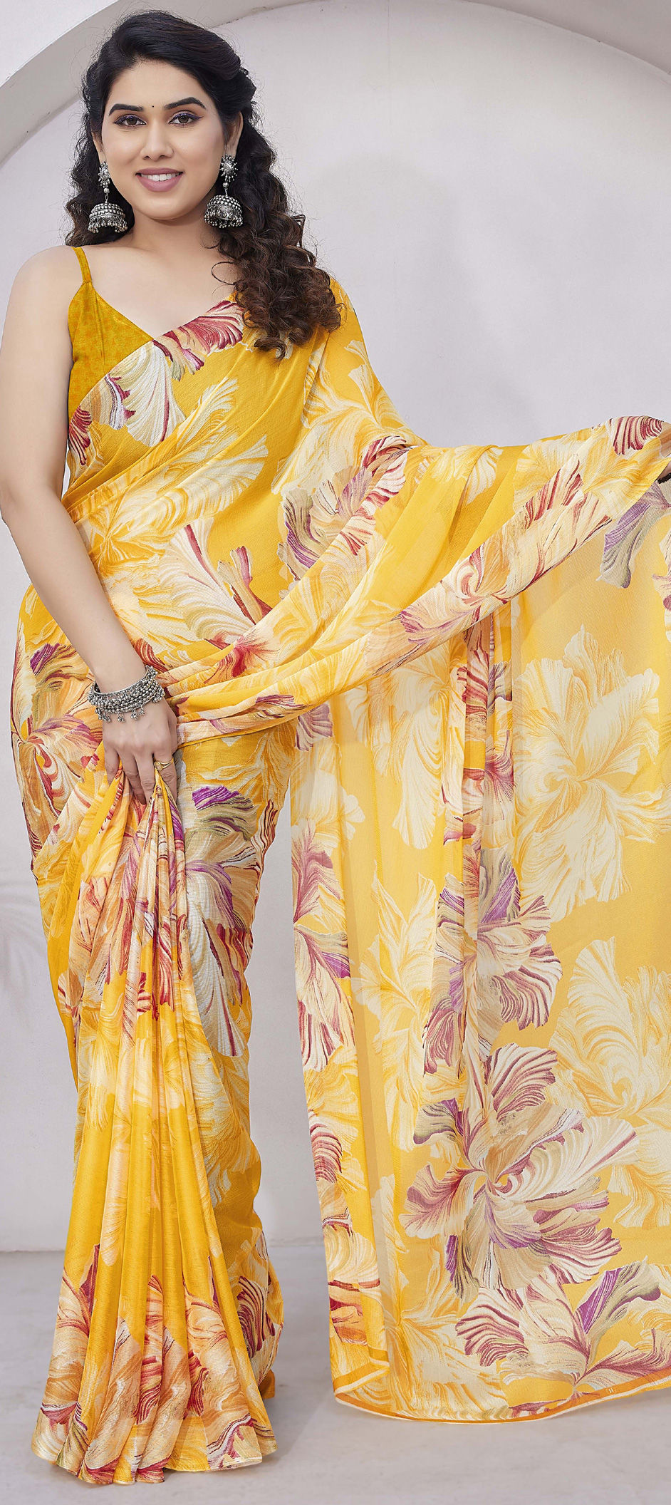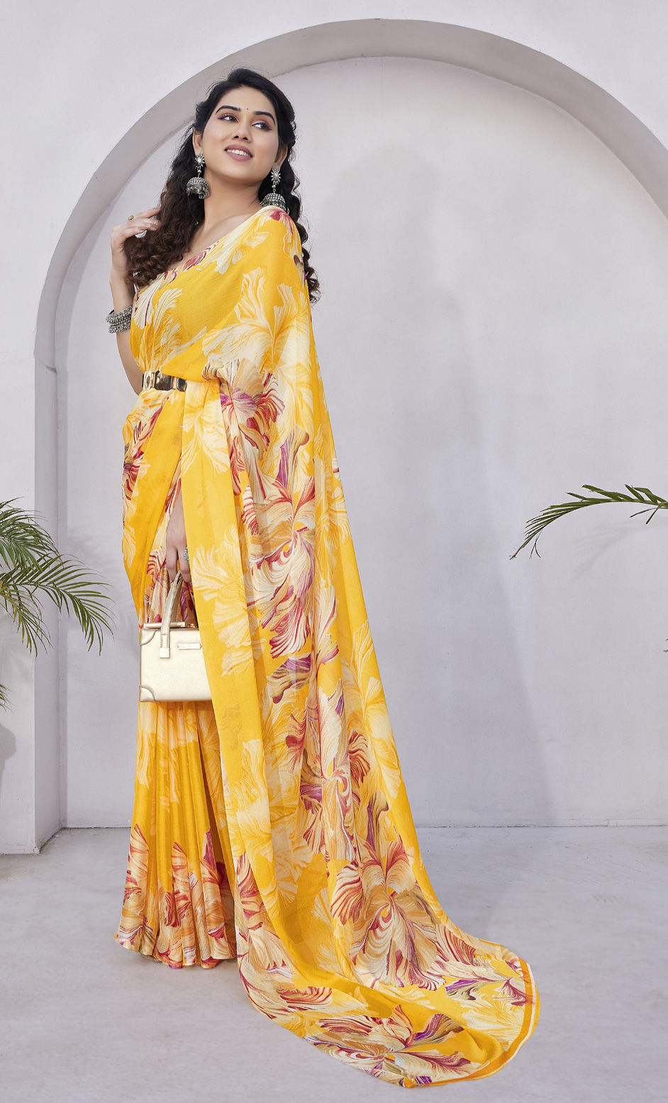 Yellow color Saree in Chiffon fabric with Floral, Printed work