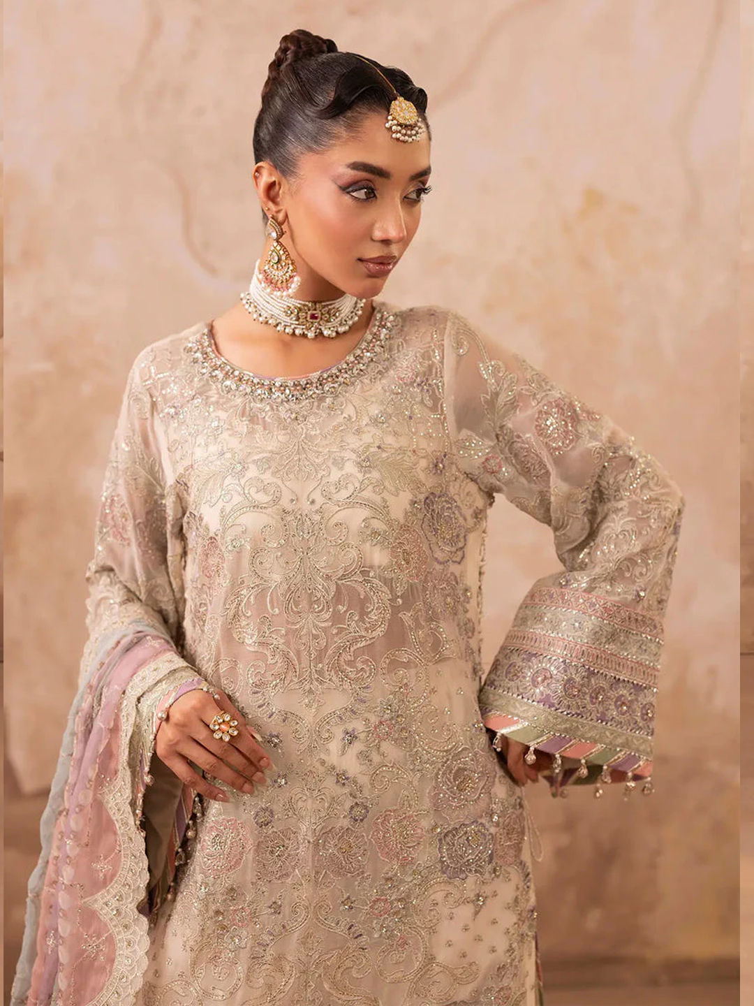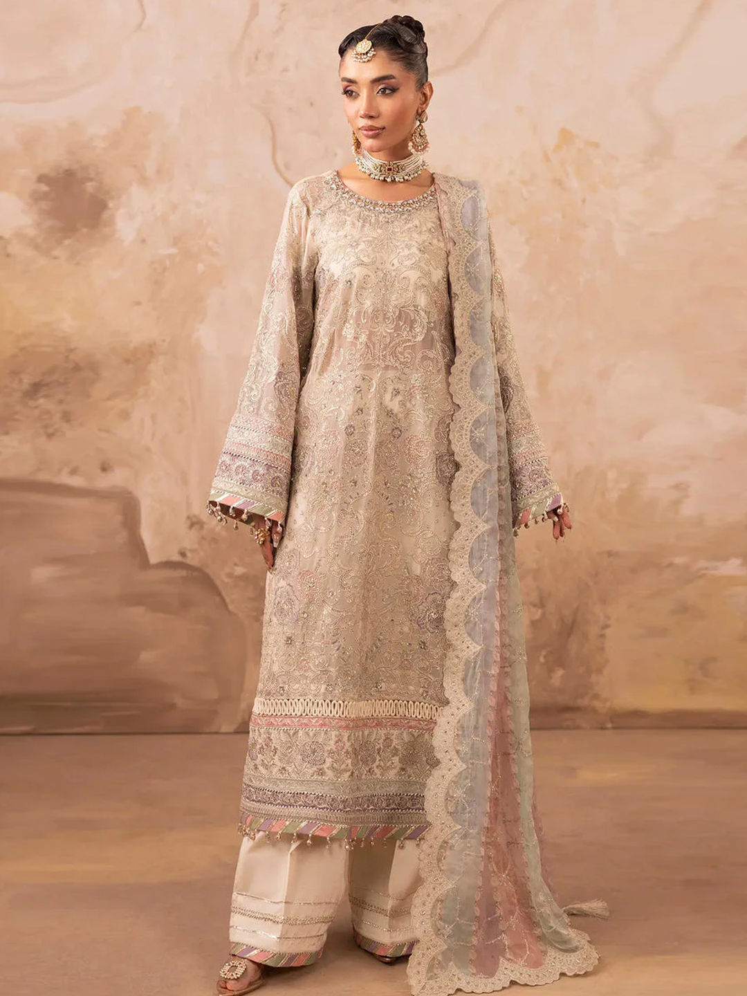 Beige and Brown color Salwar Kameez in Chiffon fabric with Embroidered, Moti, Sequence, Stone work