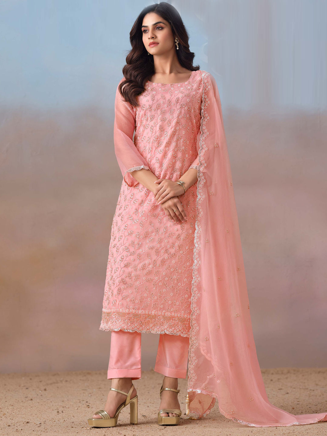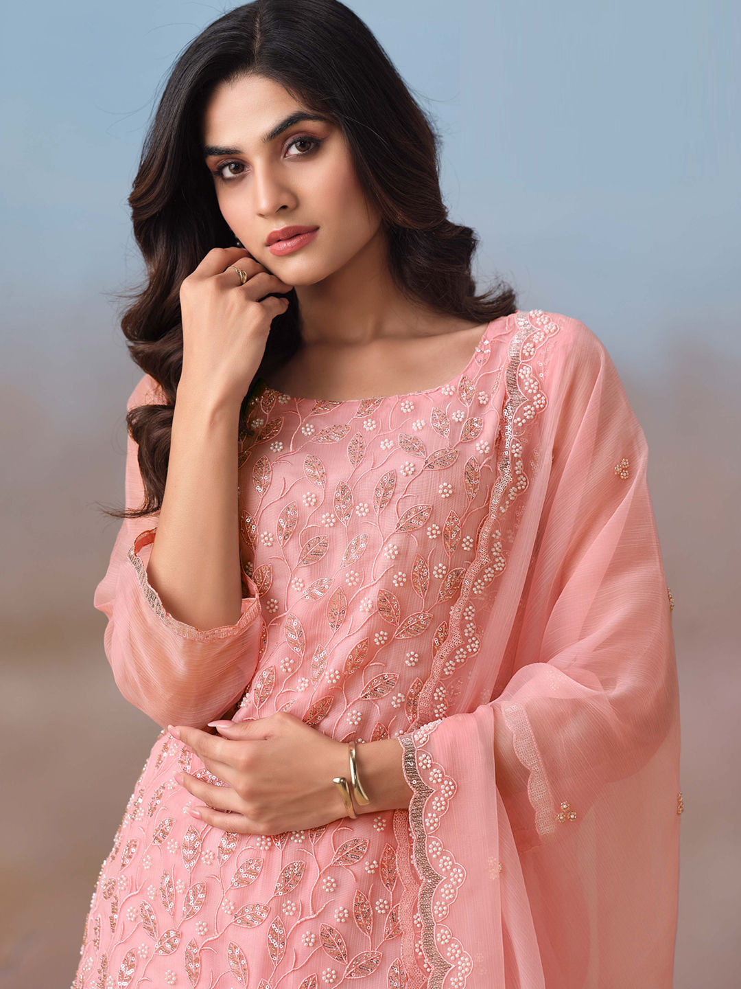 Pink and Majenta color Salwar Kameez in Chiffon fabric with Cut Dana, Moti, Sequence, Thread work