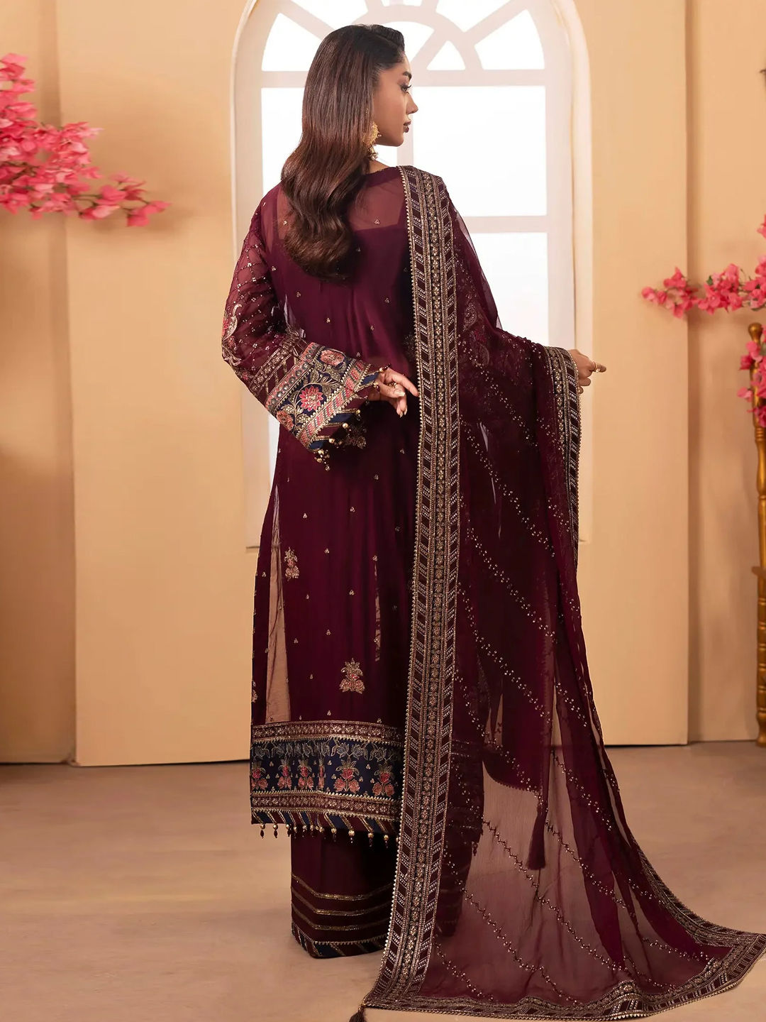 in Pink and Majenta with Stone work