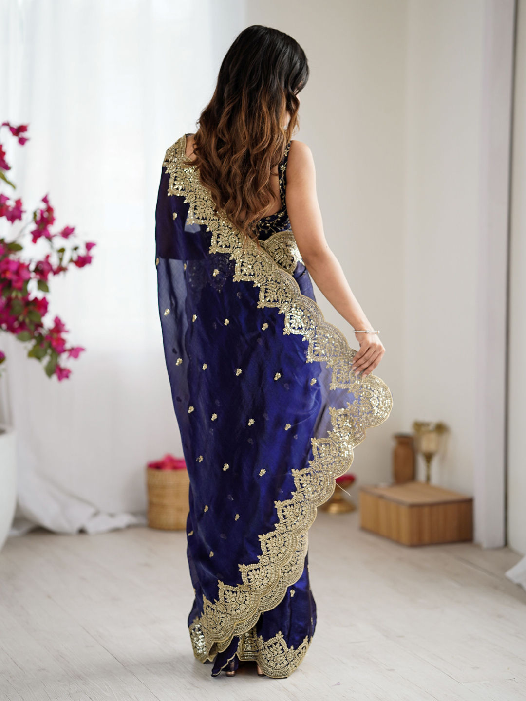 Chiffon Festive Saree in Black and Grey with Embroidered work