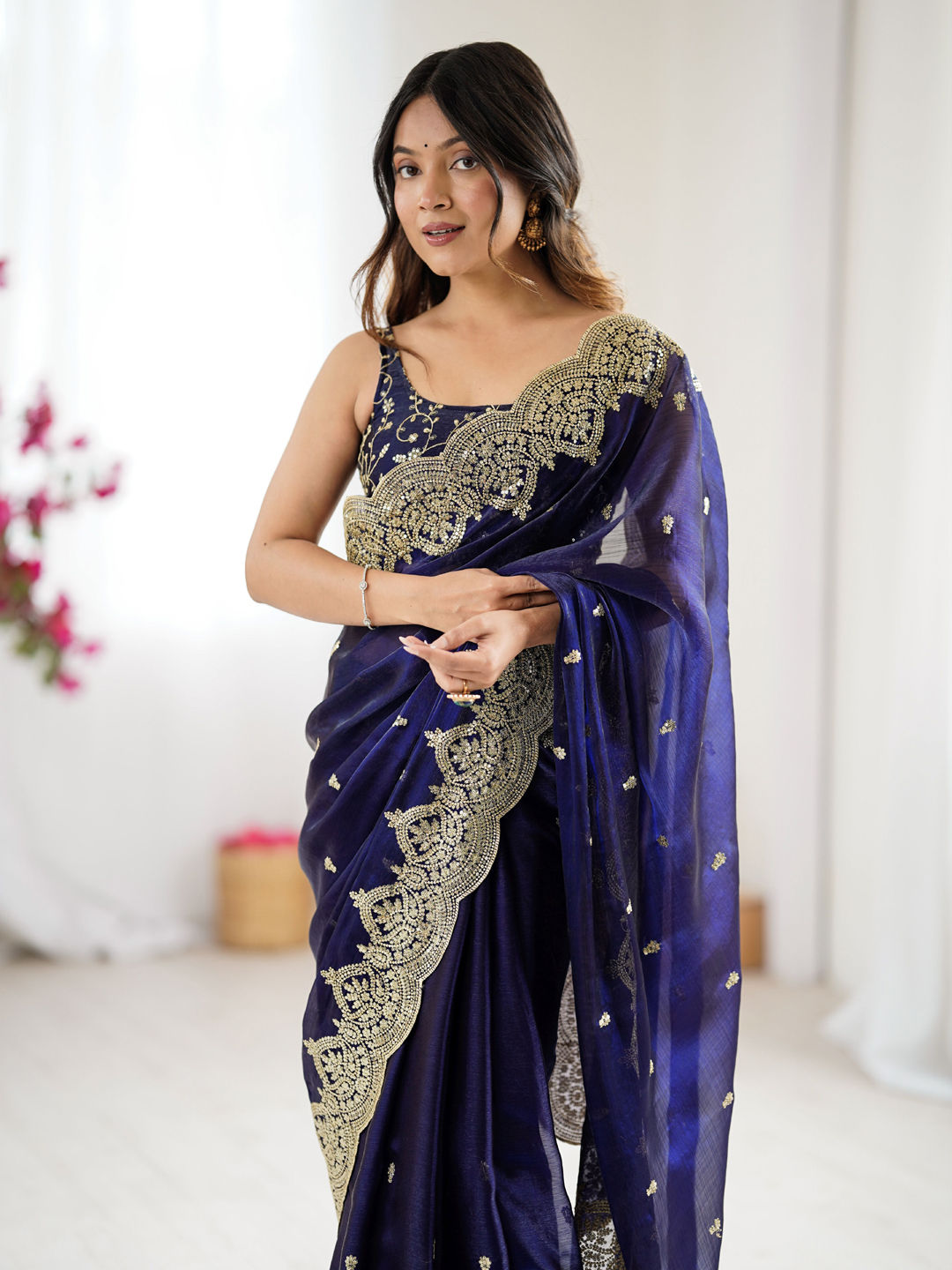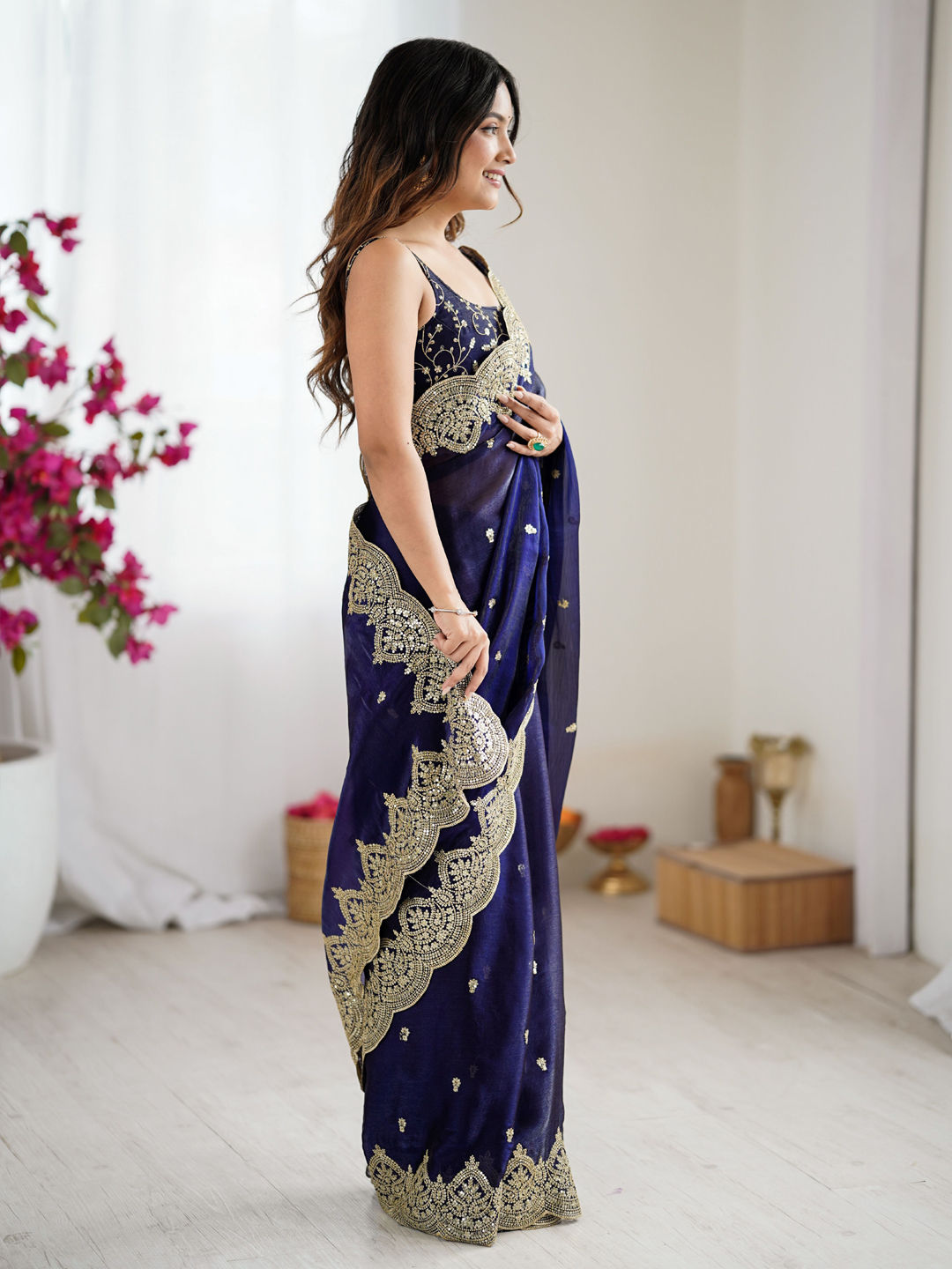 Purple and Violet color Saree in Chiffon fabric with Embroidered, Sequence, Thread work