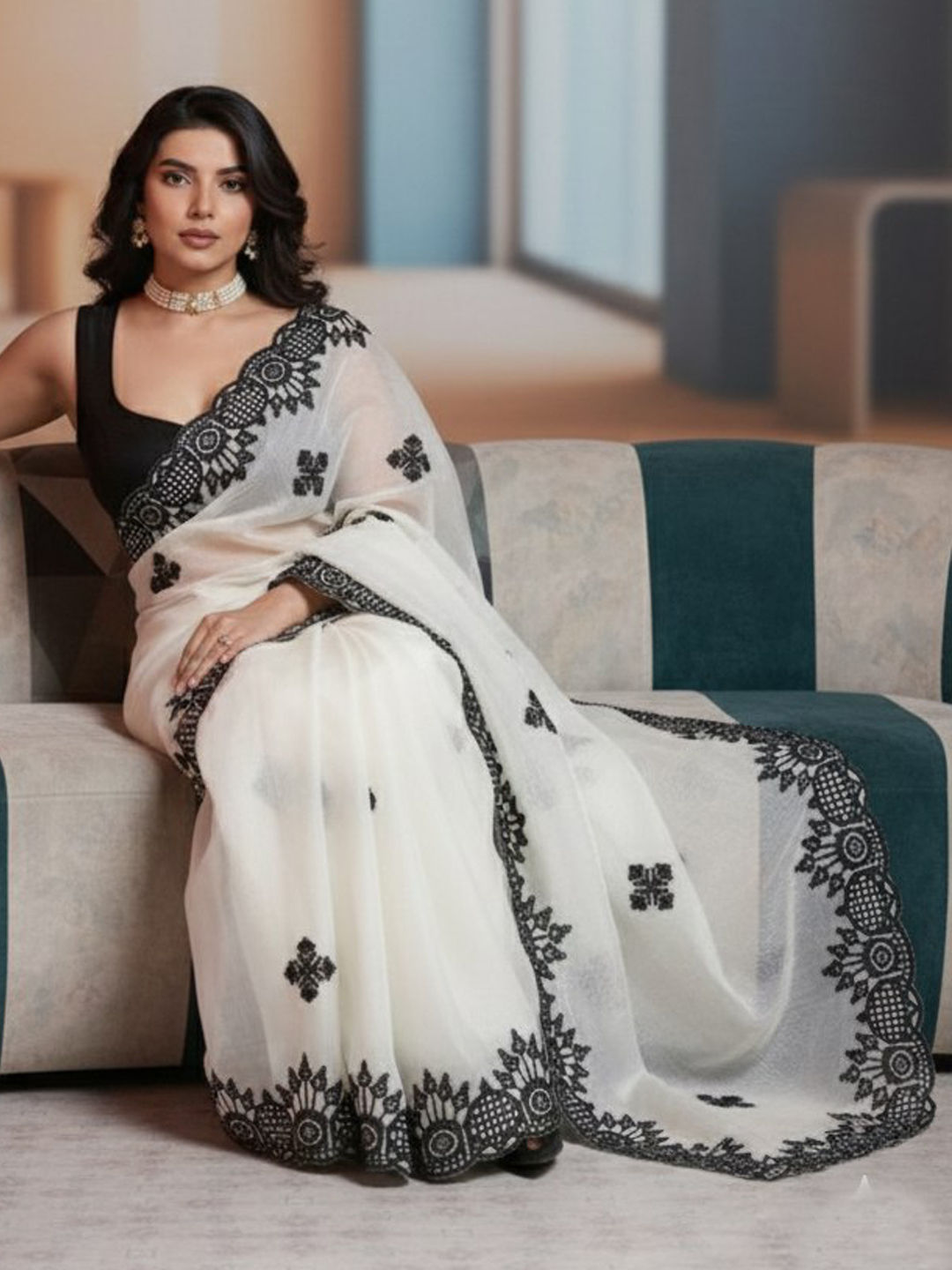 in White and Off White with Embroidered work