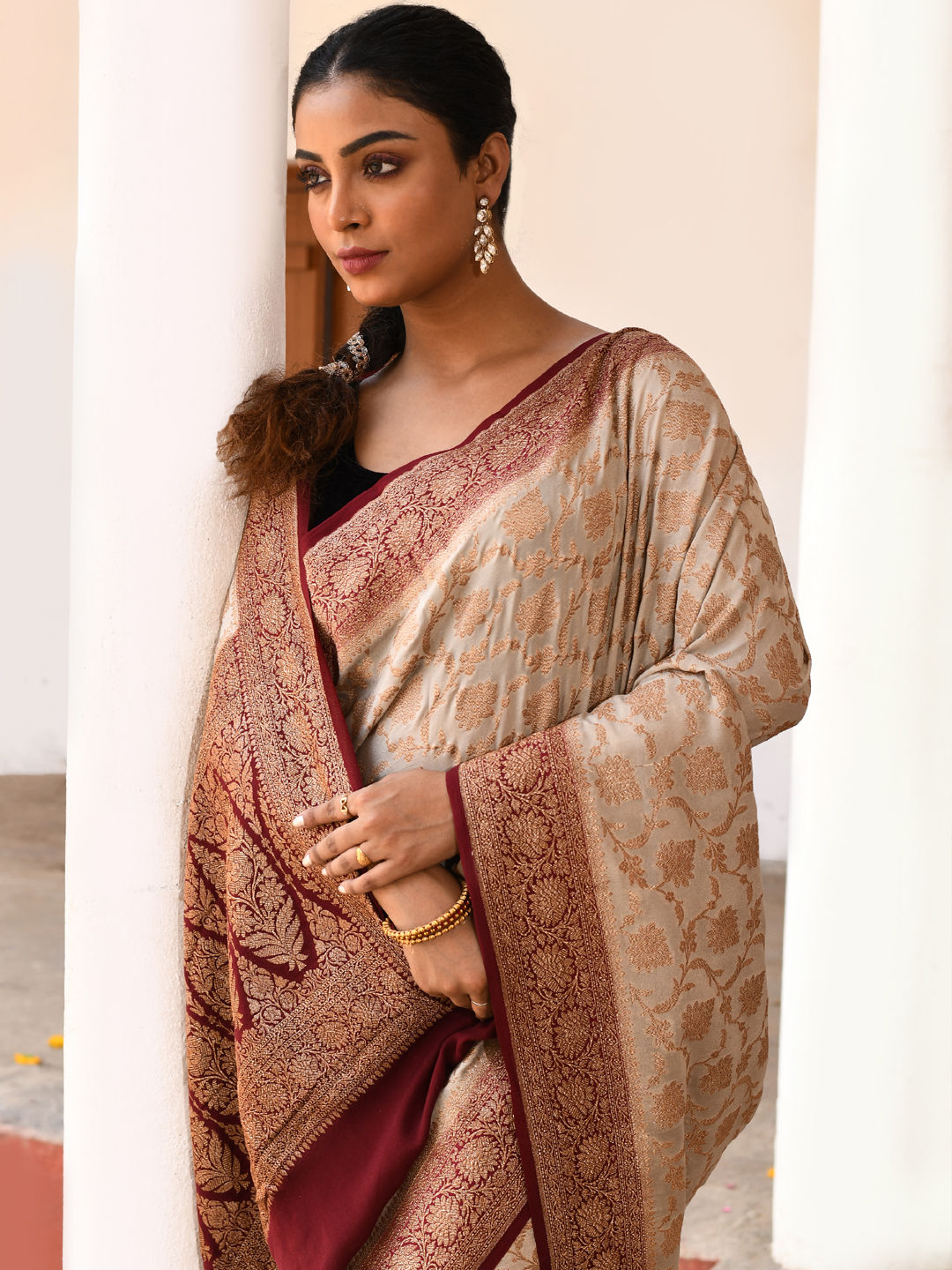 in Beige and Brown with Border work
