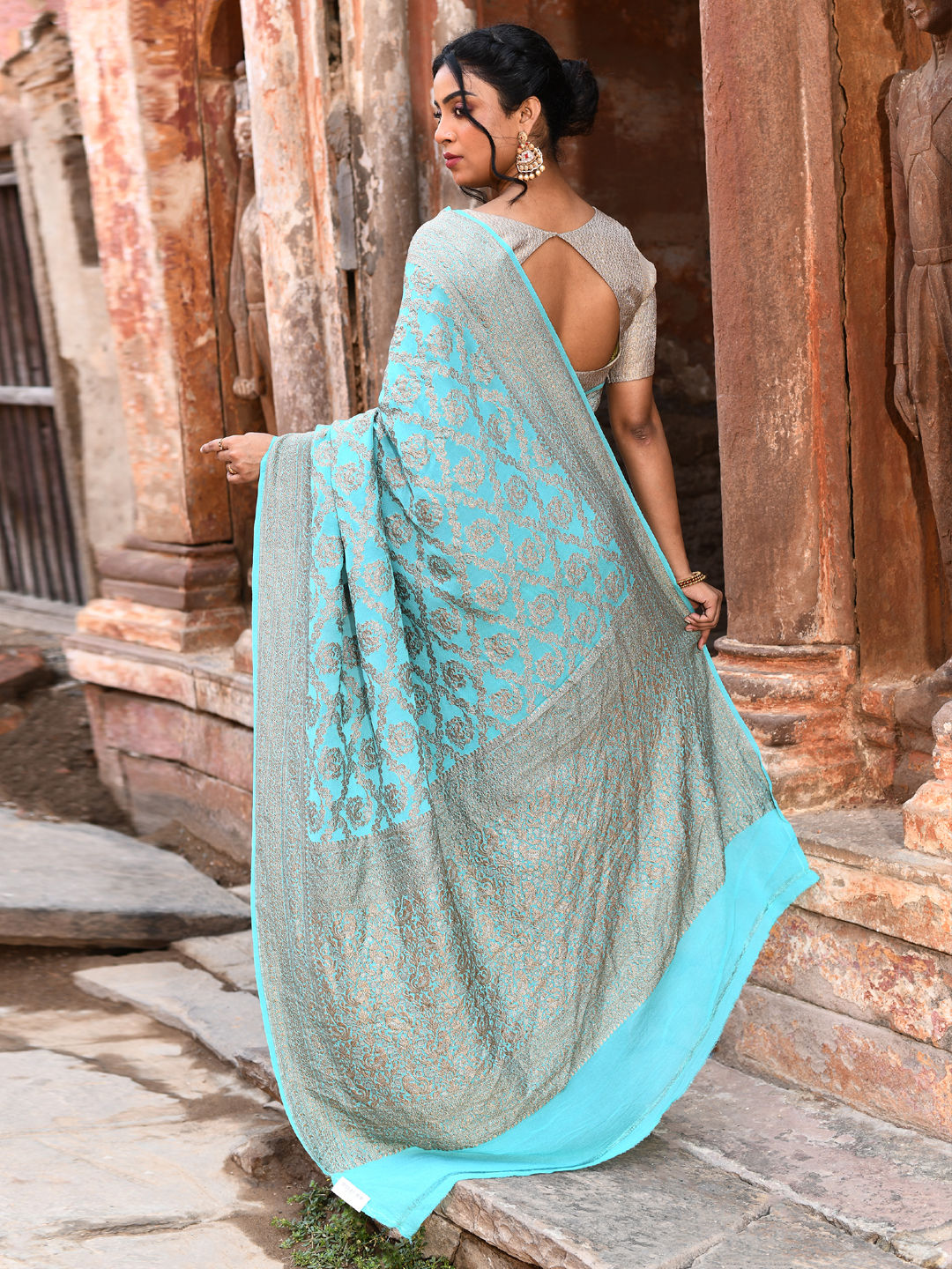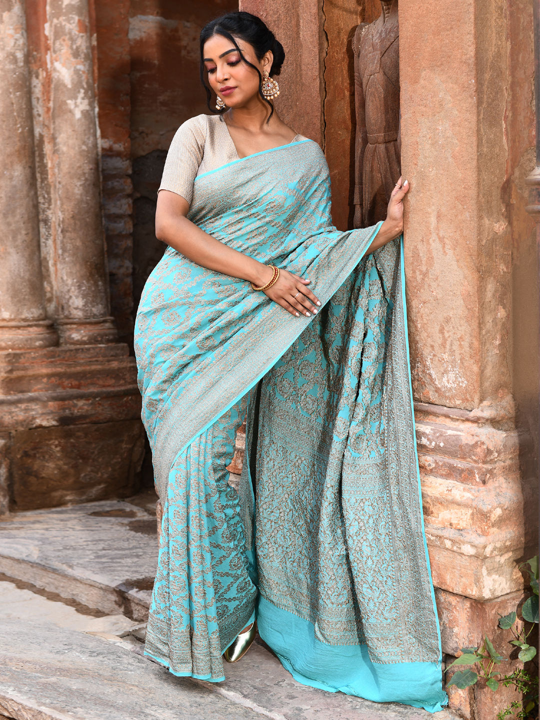 Crepe Silk Wedding Saree in Black and Grey with Zari work