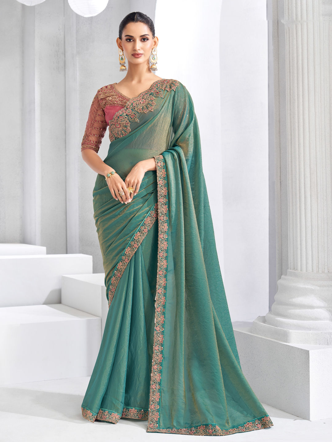 Blue color Saree in Chiffon fabric with Embroidered, Sequence work