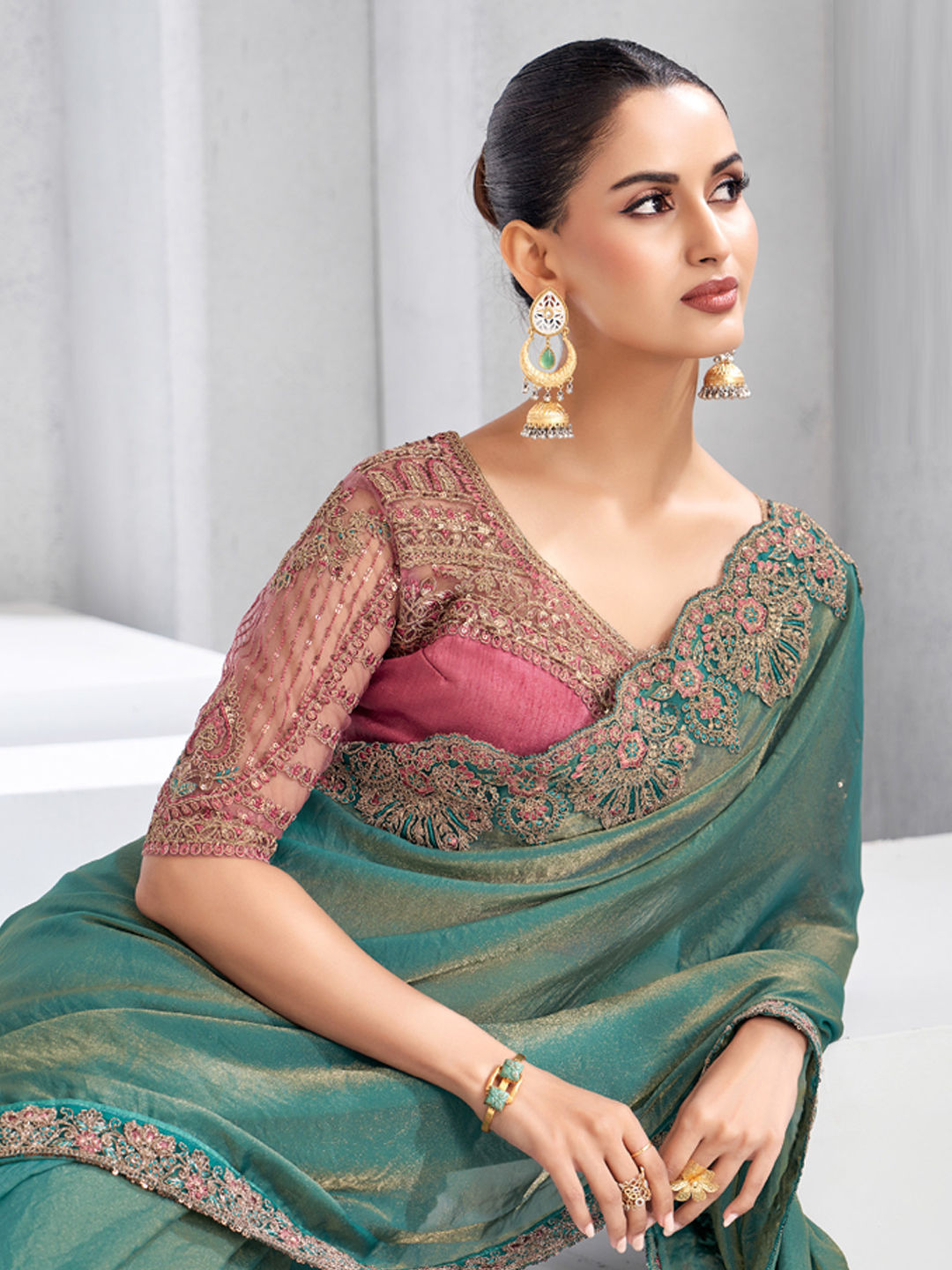 Chiffon Bridal Saree in Pink and Majenta with Embroidered work
