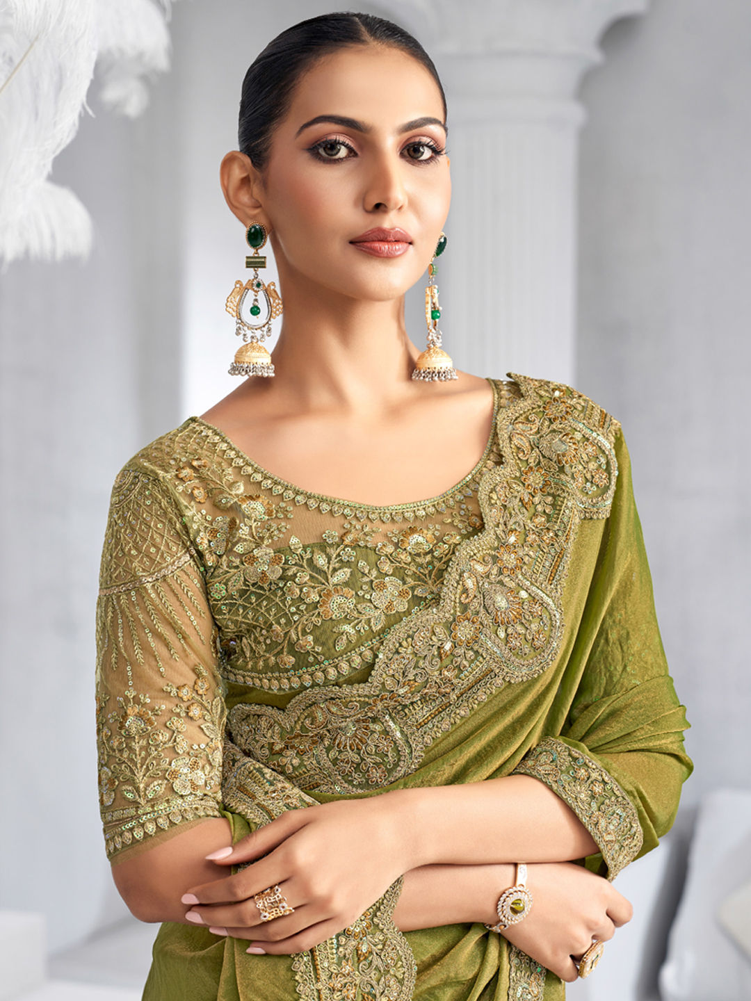 Green color Saree in Chiffon fabric with Embroidered, Sequence work