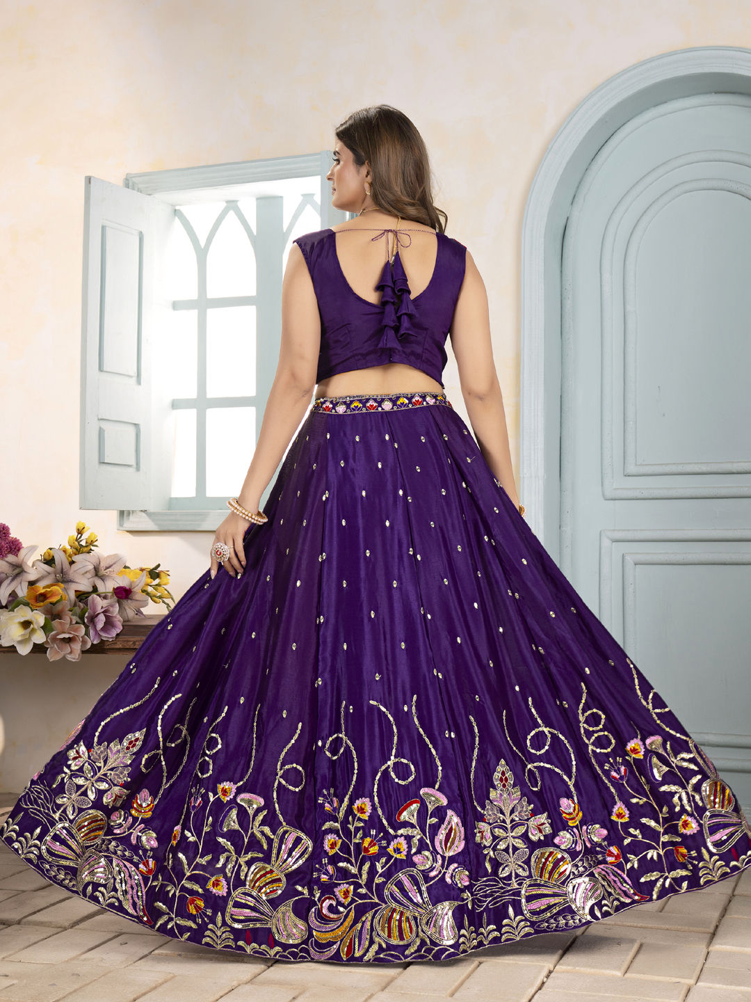 Purple and Violet color Lehenga in Chinon Silk fabric with Embroidered, Sequence work