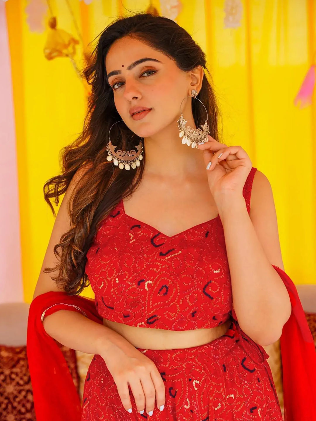 in Red and Maroon with Bandhej work