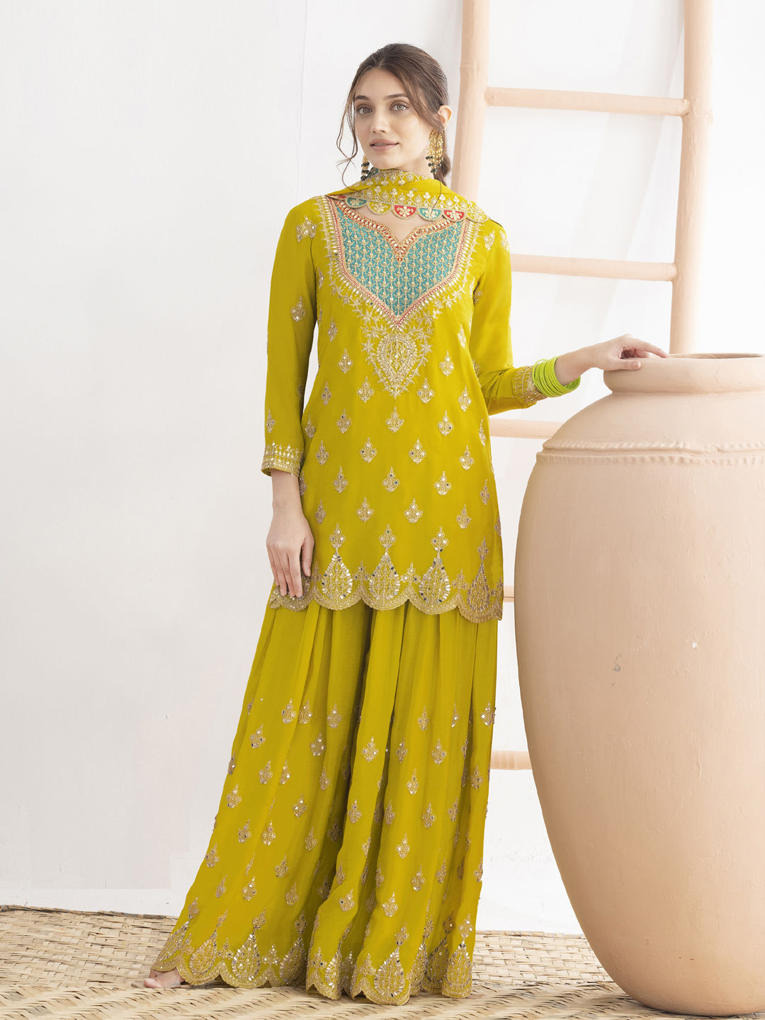 in Yellow with Embroidered work