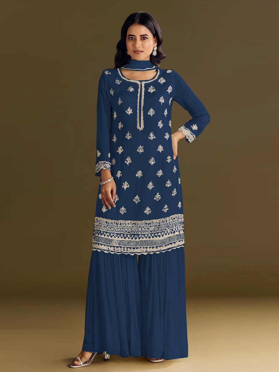 Blue color Salwar Kameez in Chinon Silk fabric with Embroidered, Sequence work