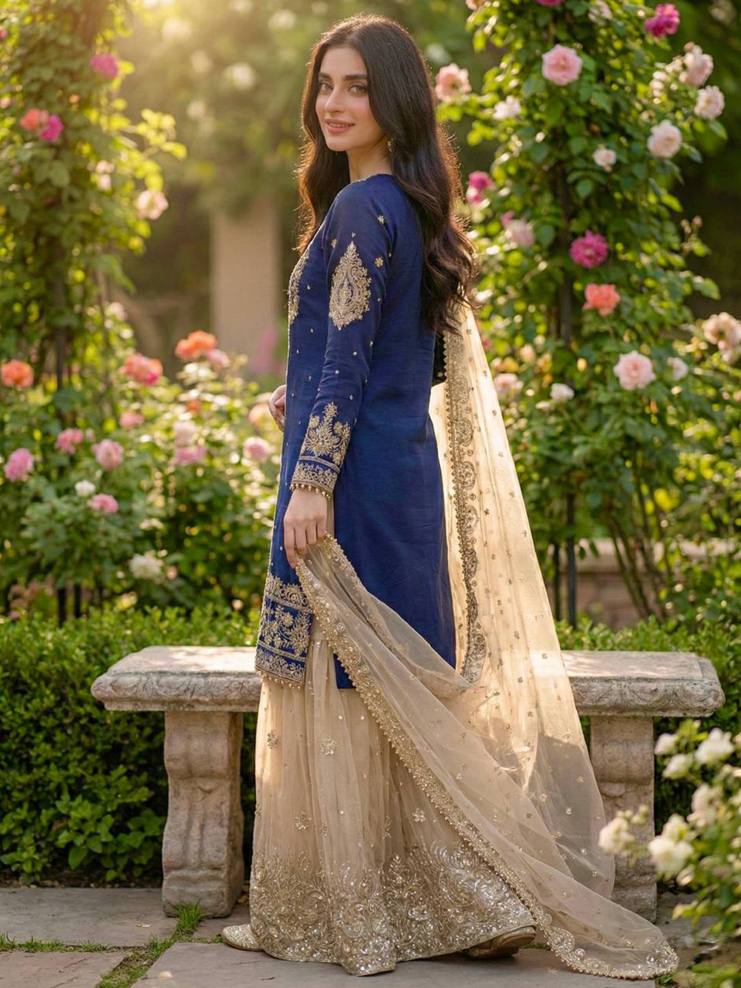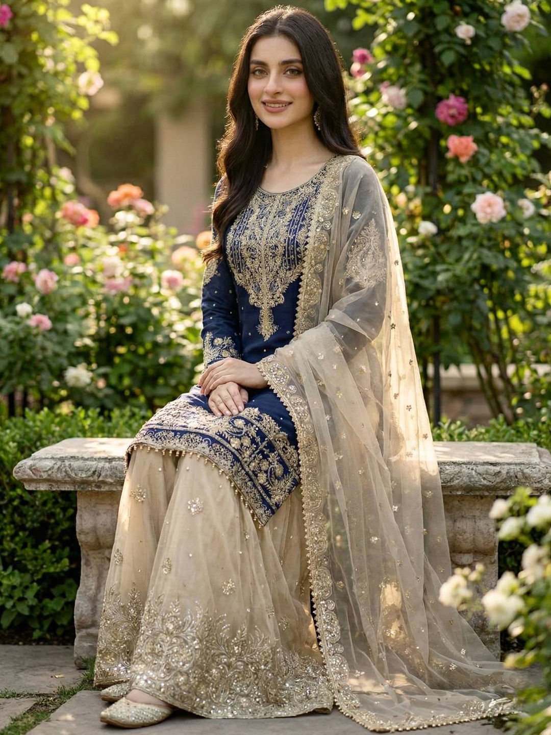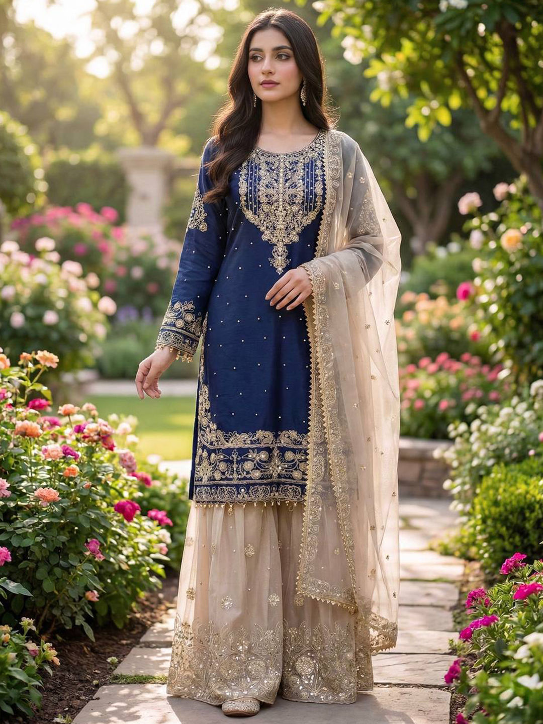 in Blue with Embroidered work