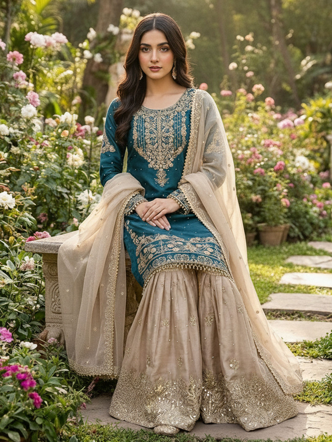 in Blue with Embroidered work