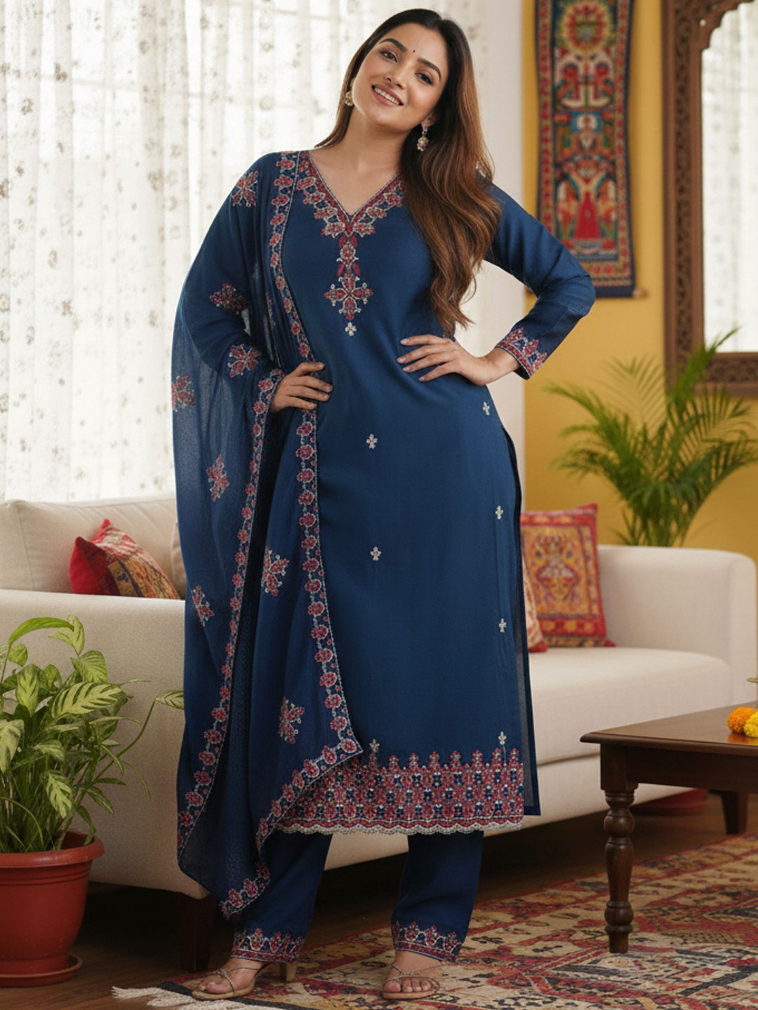 in Blue with Embroidered work