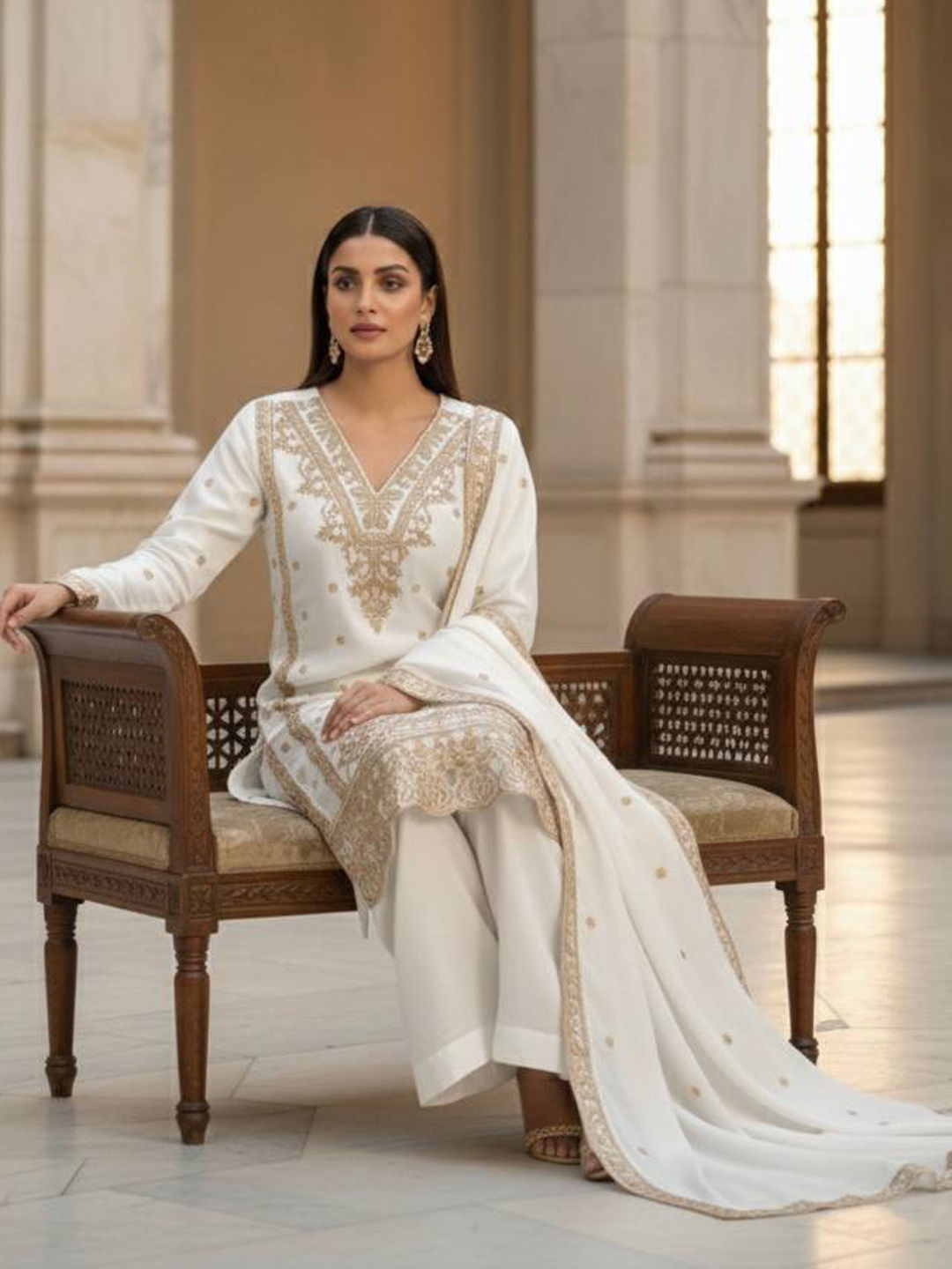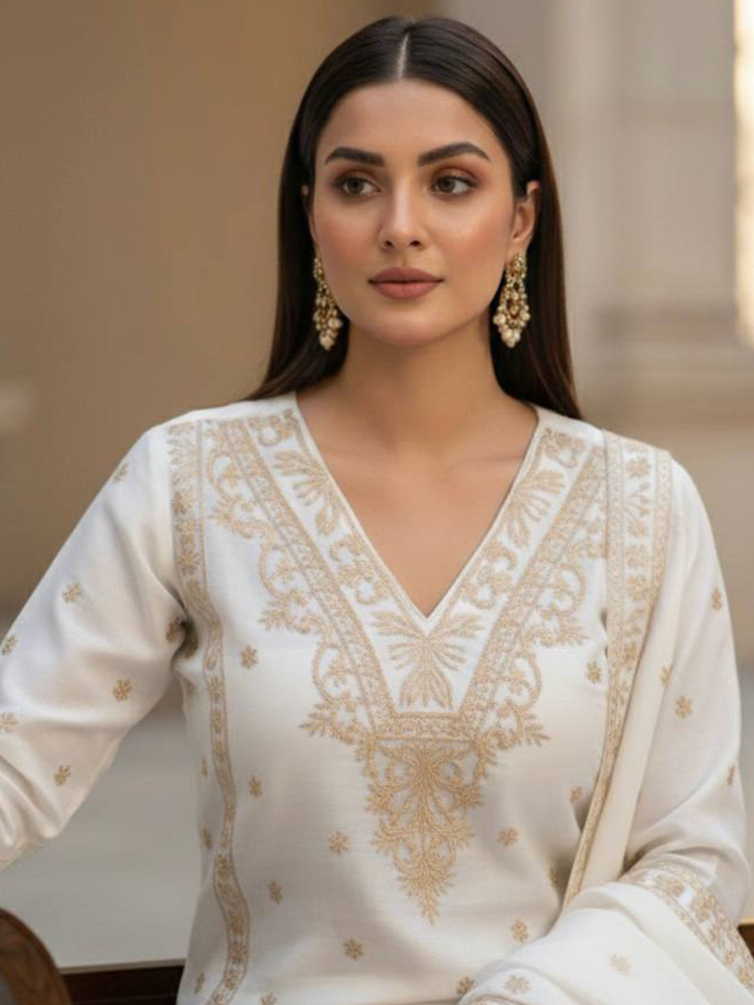in White and Off White with Embroidered work
