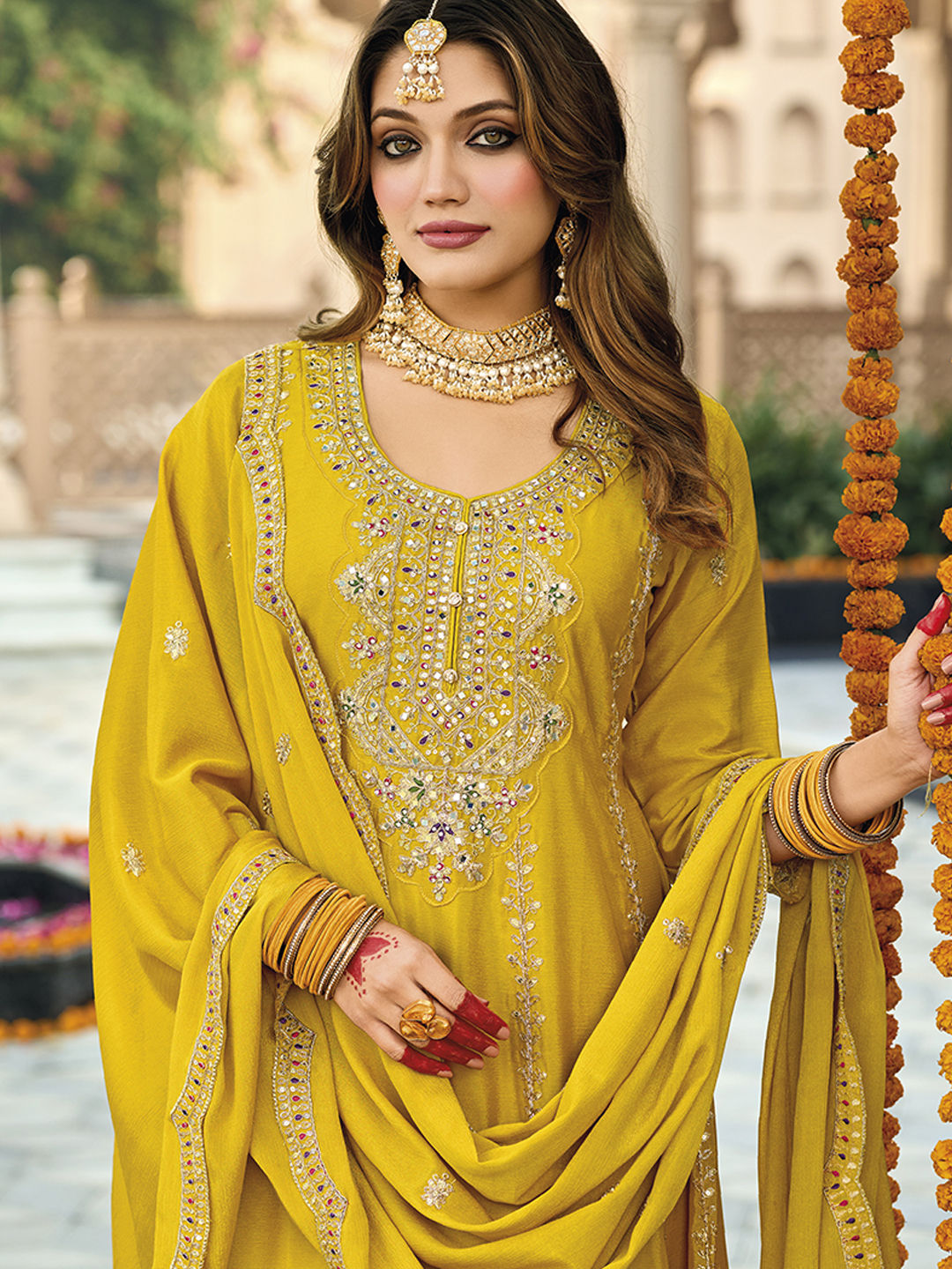 in Yellow with Embroidered work